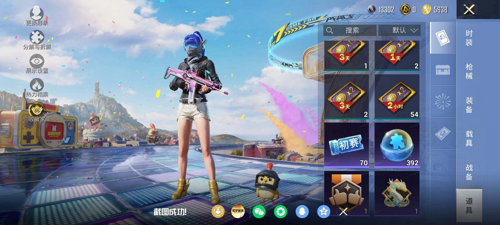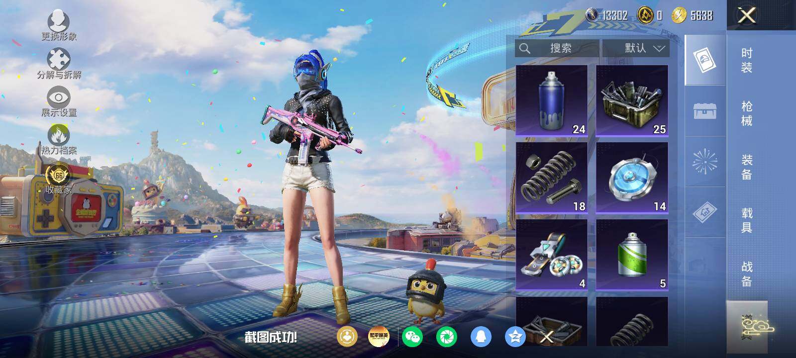 安卓 手Q-5粉装-7特效枪-0载具-5粉色飞行器-64645热力值-12王牌印记-164套装-212枪皮