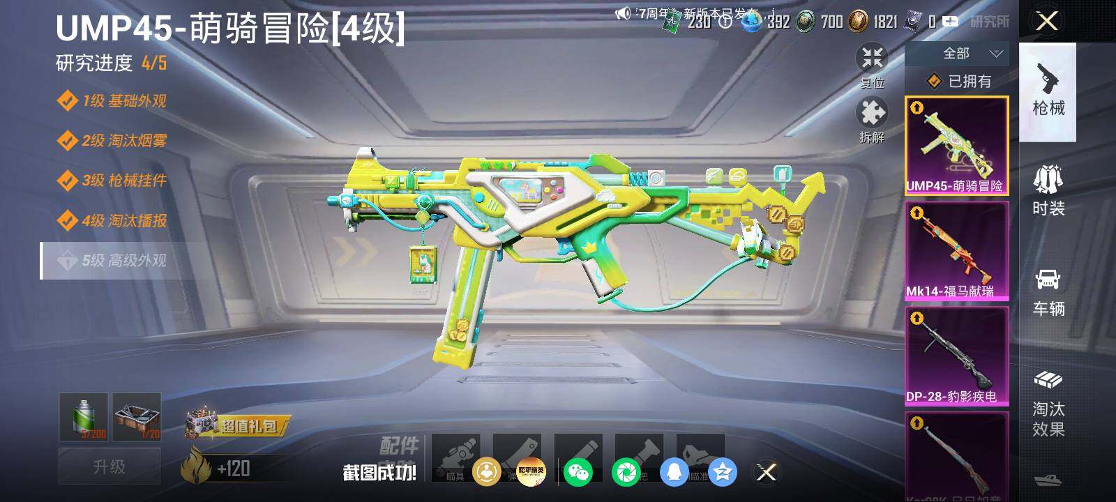 【粉色枪皮等级】:SCAR-L-梦幻火箭(六级),GROZA-精灵之光(三级),UM