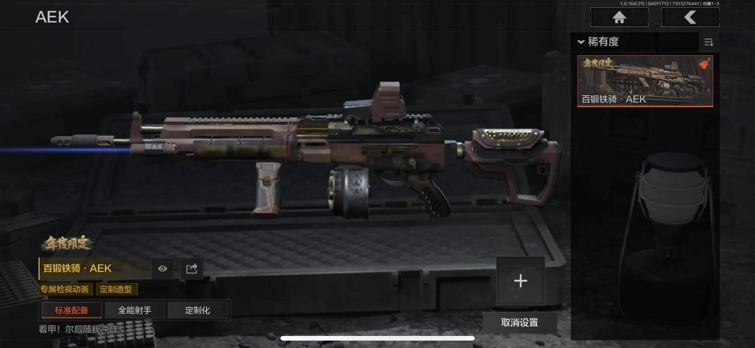 【AQD294】等级:30/段位:暗区传说/柯恩币:66414/赤火炉心/百锻铁骑AEK