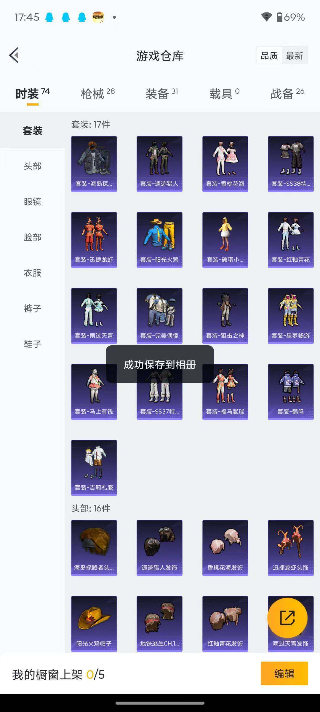 粉枪3/套装17/枪皮28/热力值6890/历史最高段位:王牌印记2次/Lv:37/四级ACE32-萌骑漫游/四级AKS-74U-森灵之息/五级Mk14-福马献瑞/ACE32-萌骑漫游/AKS-74U-森灵之息/Mk14-福马献瑞/套装-马上有钱/套装-迅捷龙虾/套装-遗迹猎人/套装-雨过天青/套装-红釉青花/AKM-星之彼岸/SCAR-L-夜灯/M416-糯团青竹/AUG-耀粉歌者/蜜獾-天降