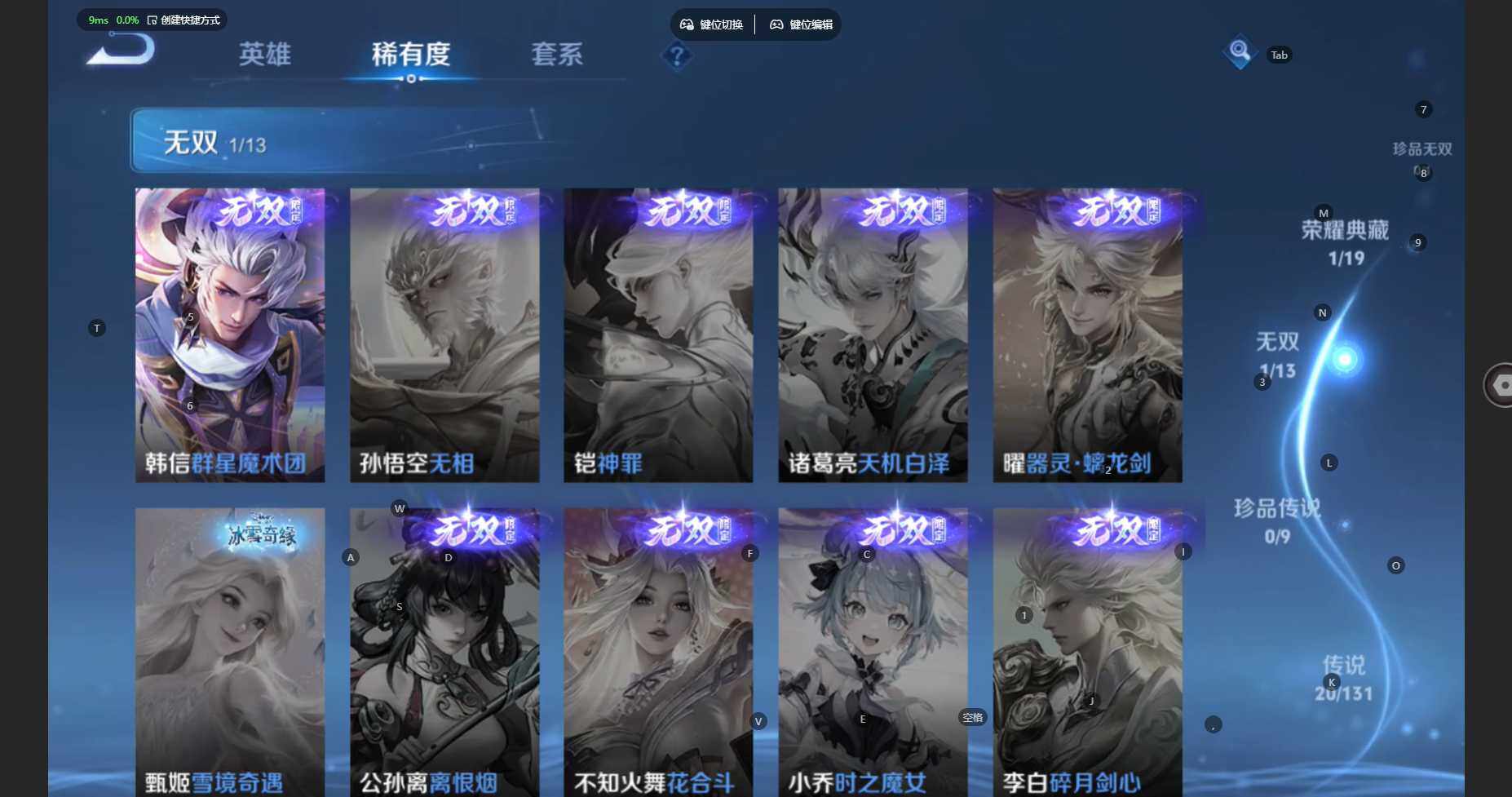 苹果Q-V8-至尊星耀IV段位-127英雄-305皮肤-1典藏皮肤-1无双-2