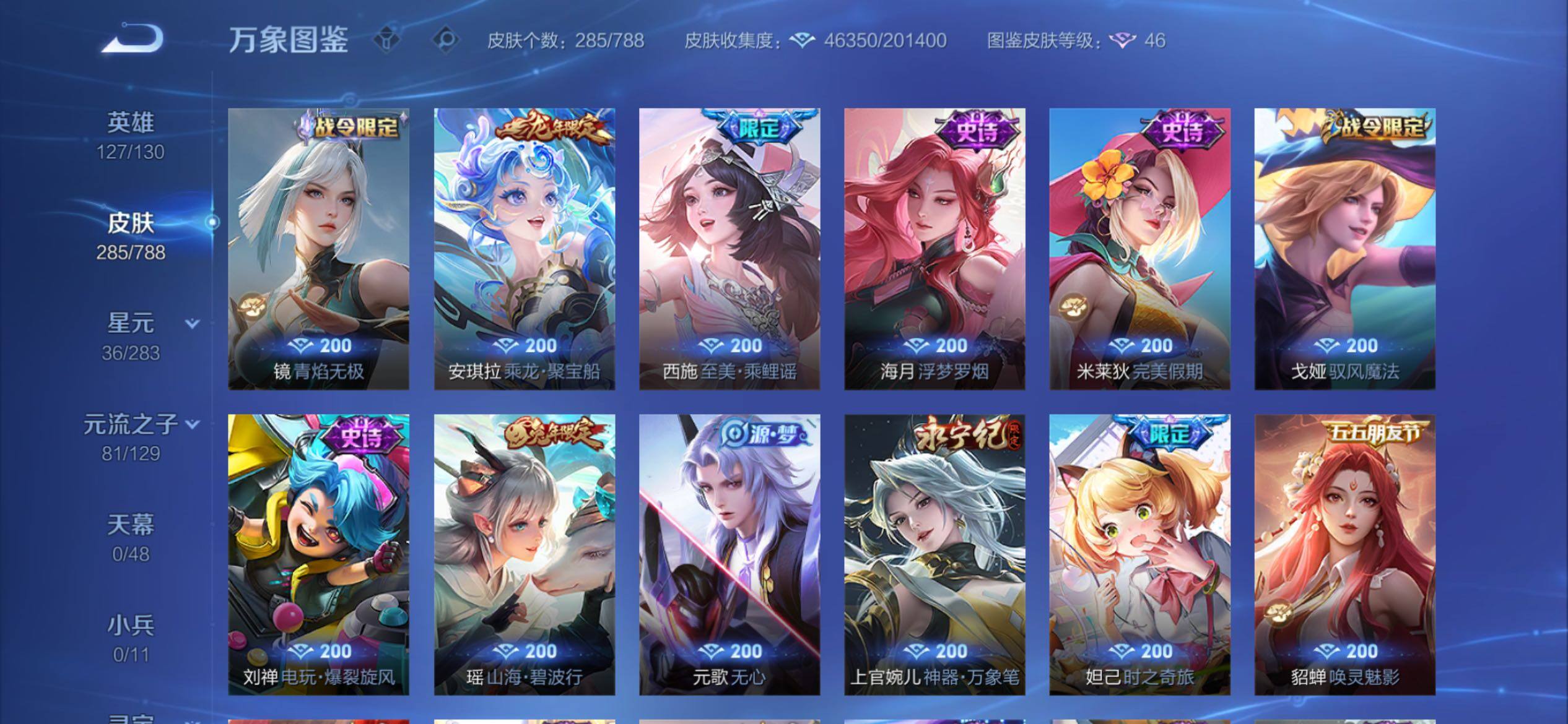可换绑【精品v9女号· 典藏小乔·珍品瑶孙策·蛇年全套·马年貂蝉朵利亚·干将狐妖·碧波行·安琪拉龙年·大圣娶亲·至尊宝·热情桑巴·魔法小厨娘·贵族积分10w】1星传说 40按键 252幸运值 4王者印记 80五级铭文,可二次苹果Q-V9-285皮肤-1典藏皮肤-2珍品传说-28传说-91史诗【英雄全皮】:孙权全皮,西施全皮,戈娅全皮,空空儿全皮,影全皮,少司缘全