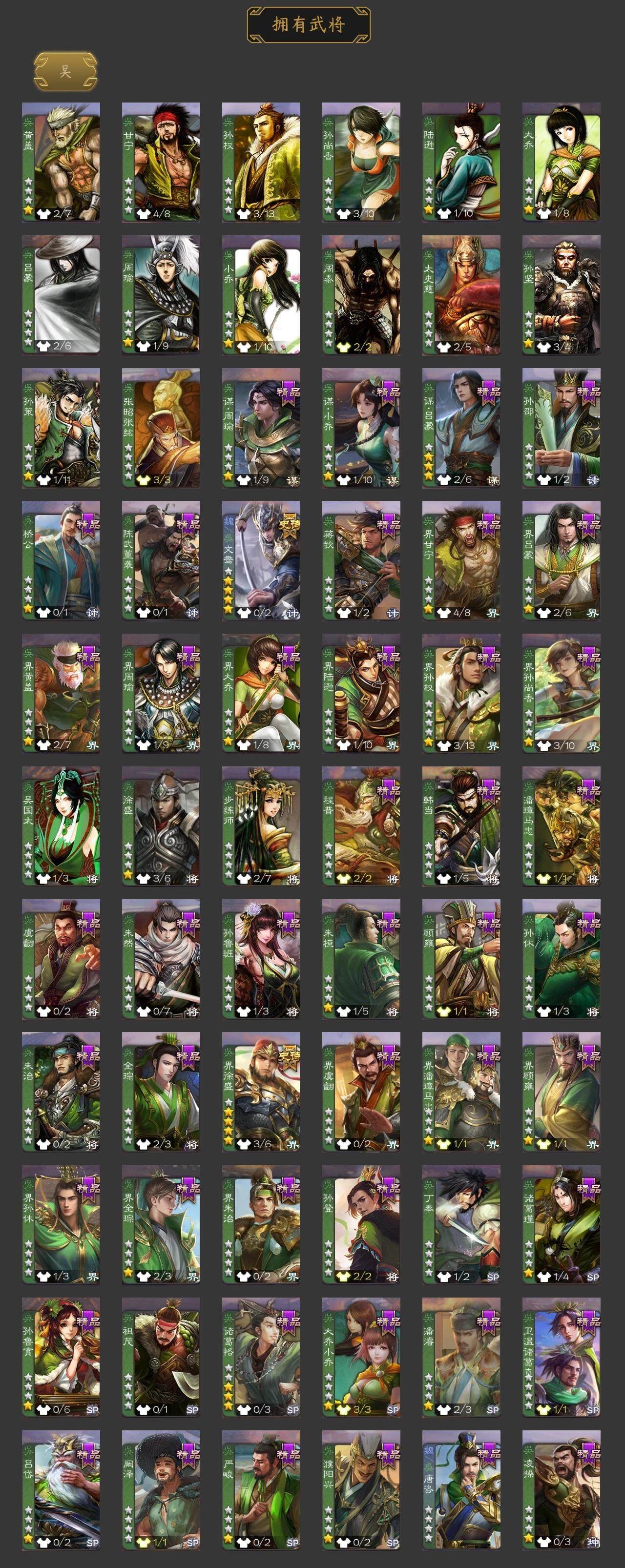 神吕布,神陆逊,神诸葛亮,曹髦,星周不疑,王元姬,界钟会,界于禁,嵇康,曹纯,戏志才,刘晔,程昱,谋赵云,诸葛瞻,张星彩,沙摩柯,谯周,界黄忠,花鬘,界徐盛,文鸯,界沮授,星黄忠,麹义,谋张角,许攸,兀突骨,神吕蒙,神周瑜,SP关羽,SP蔡文姬,乐
