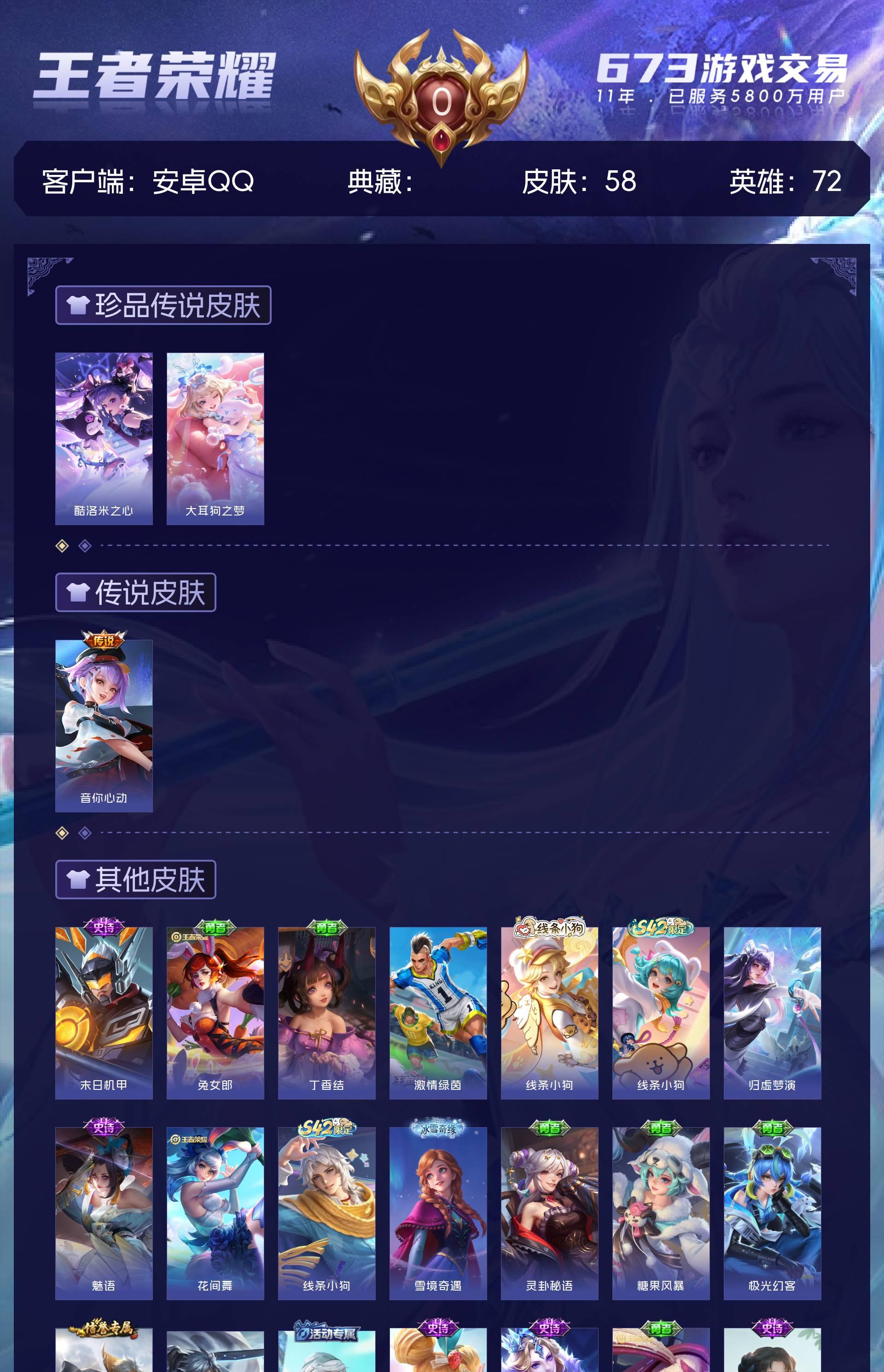 皮肤58 英雄72 永恒钻石 珍品传说2 传说1