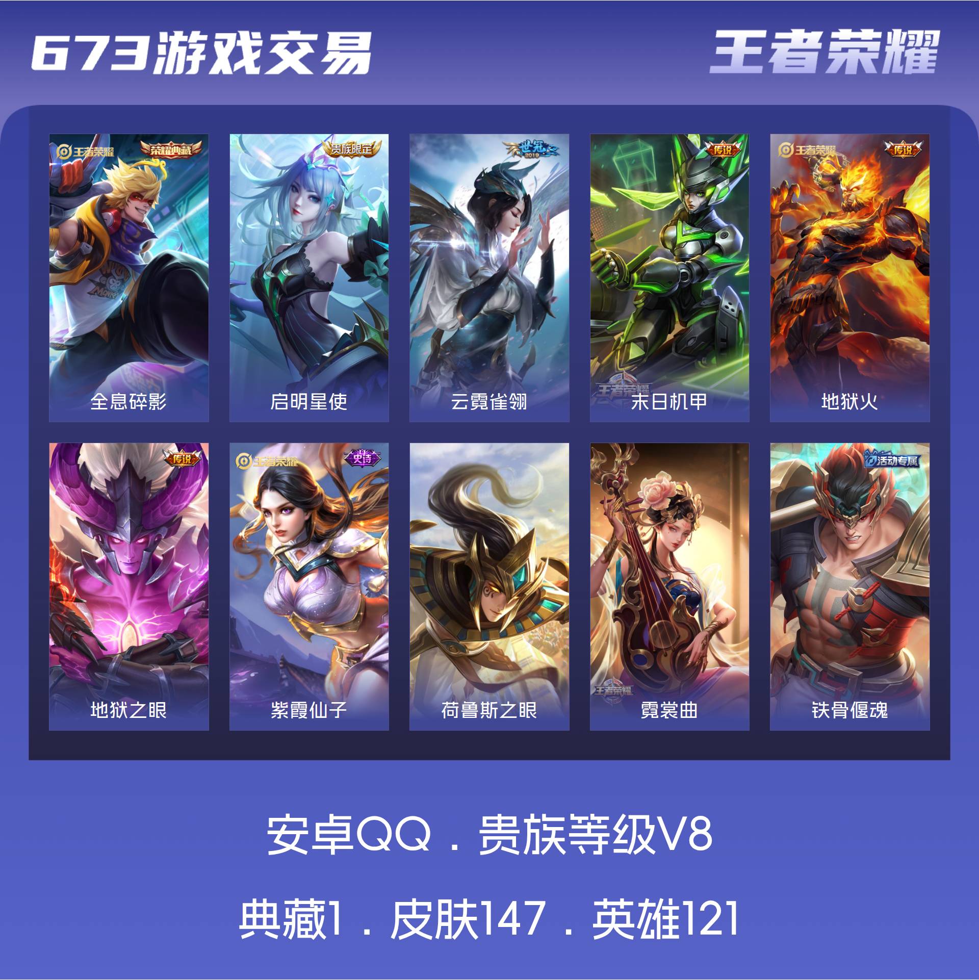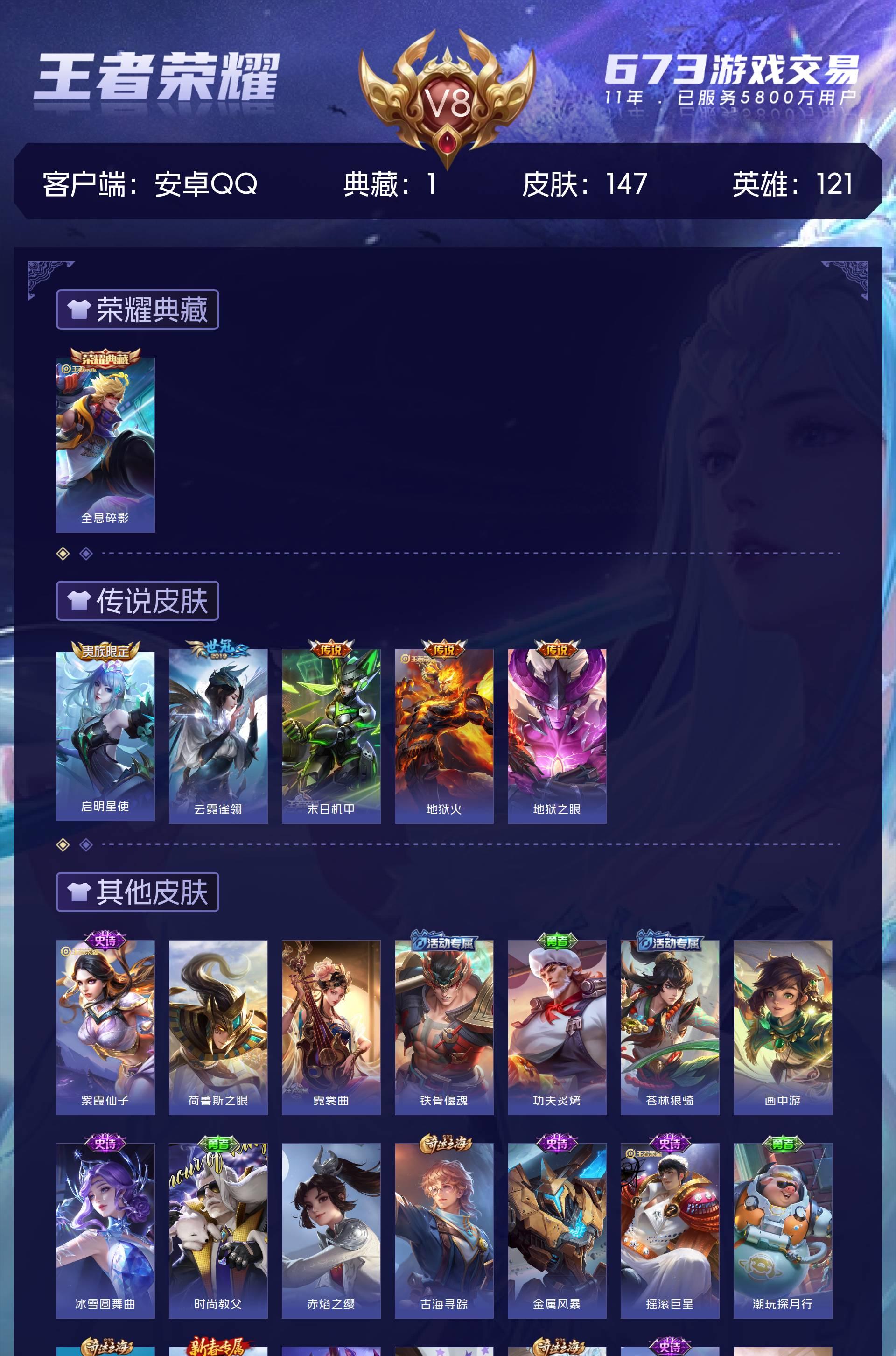 V8 皮肤147 英雄121 永恒钻石 荣耀典藏1 传说5