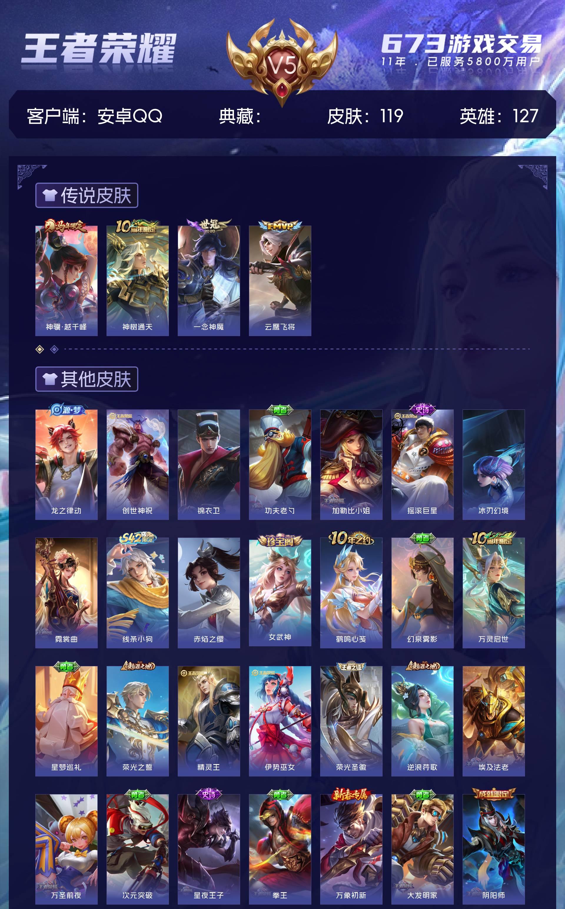 V5 皮肤119 英雄127 永恒钻石 传说5
