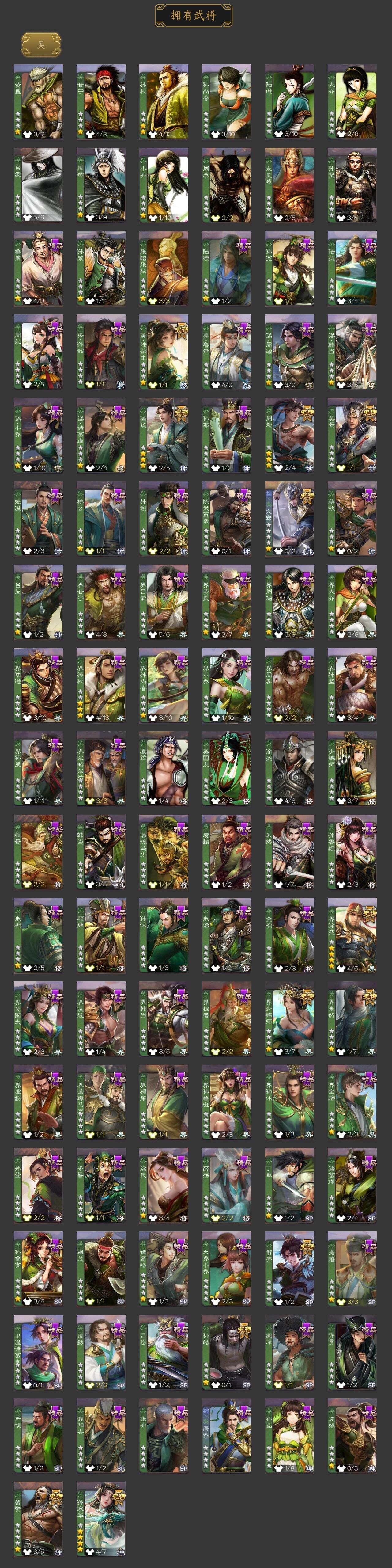 神吕布,神赵云,神陆逊,神张辽,神荀彧,神诸葛亮,曹髦,王粲,杨修,王元姬,王凌,司马师,界钟会,界于禁,界曹真,嵇康,郝昭,曹婴,曹纯,戏志才,谋曹丕,清河公主,崔芙,势辛