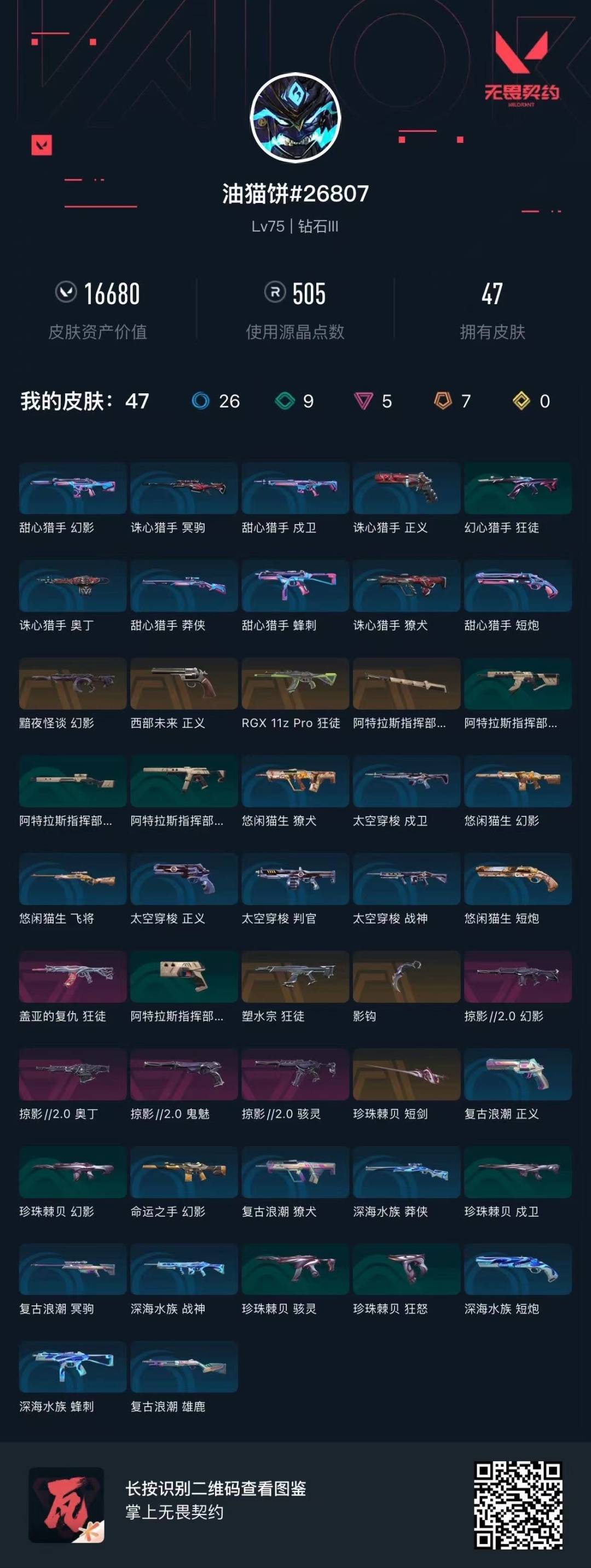 7橙皮 5紫皮 47皮肤 13英雄 71卡面 505已用源晶 钻石段位 可二次 可修