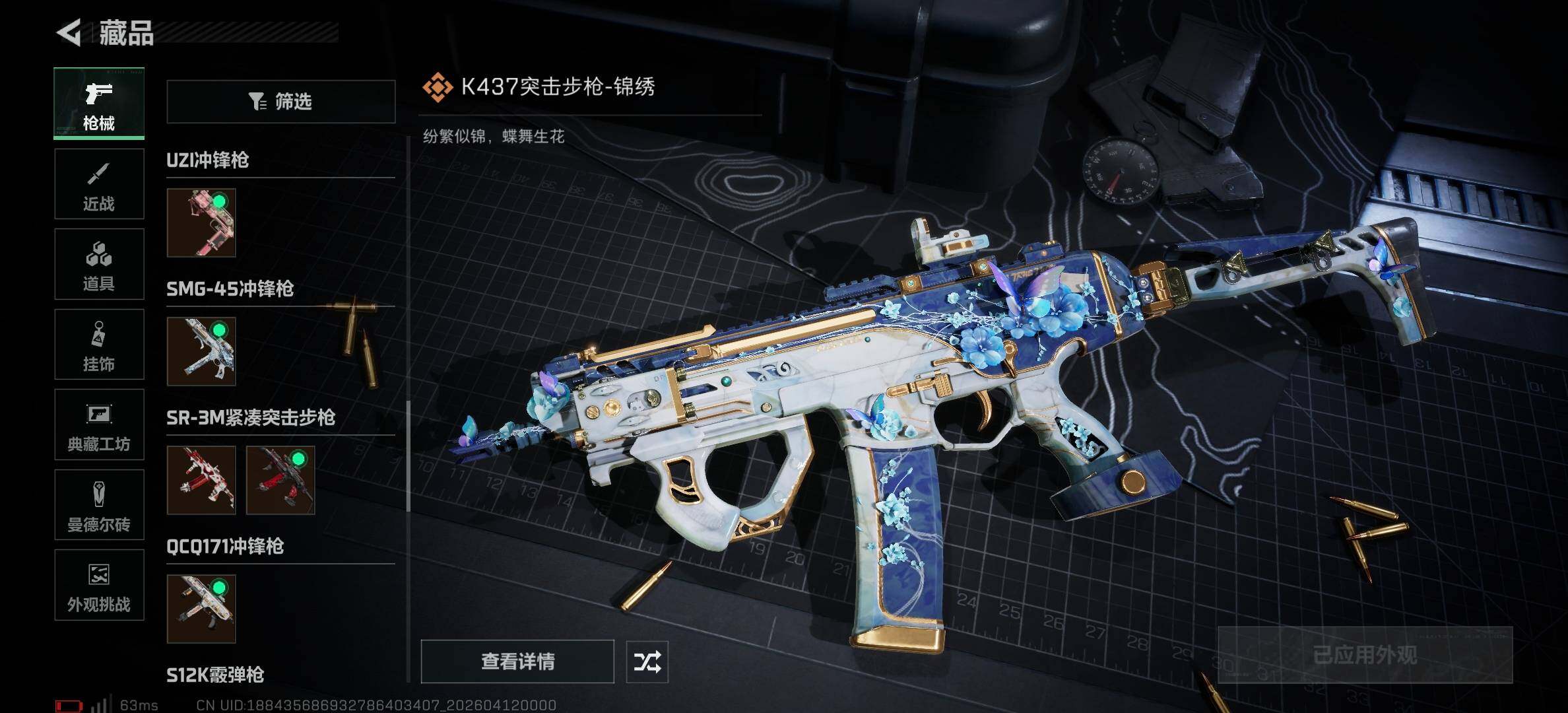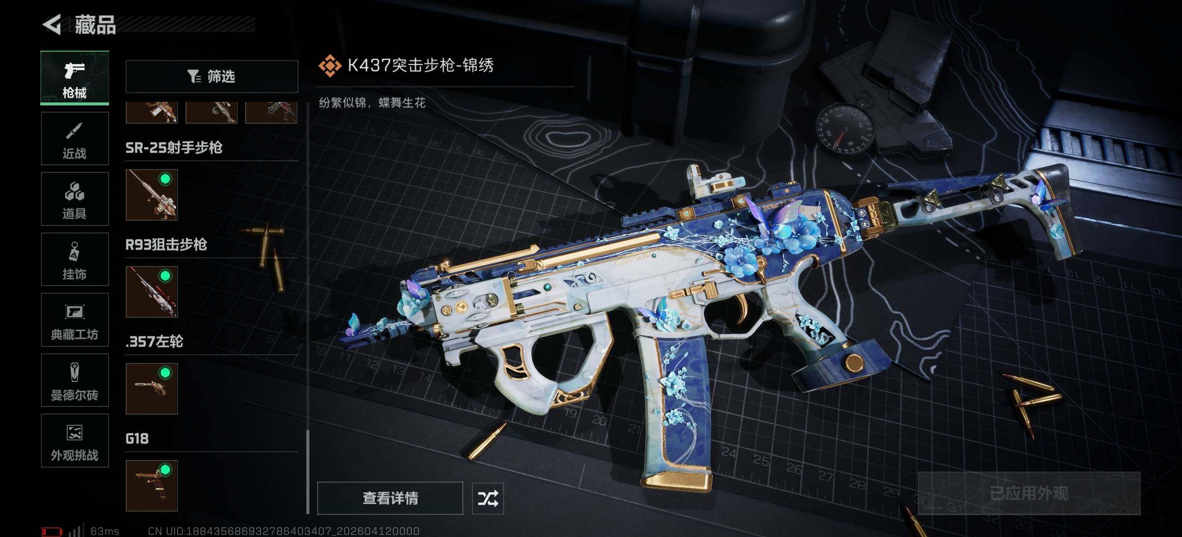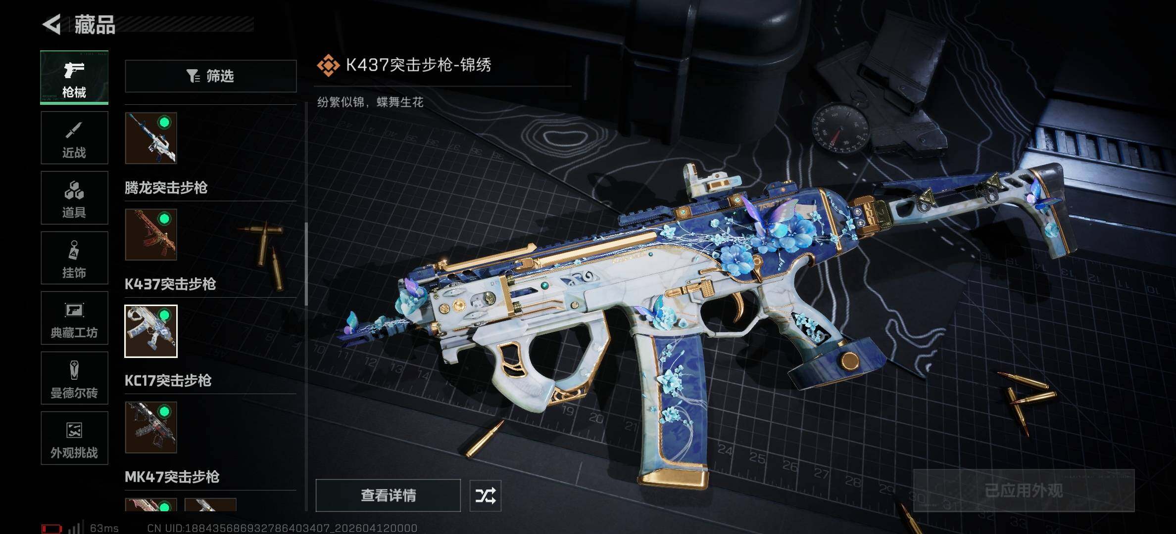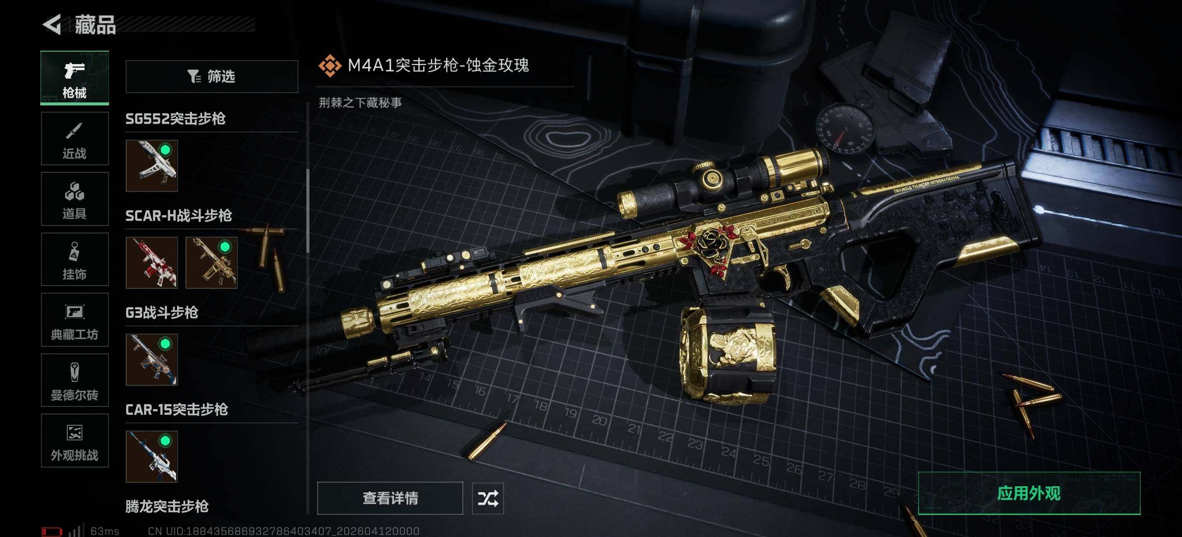 【传说外观】:M4A1突击步枪-蚀金玫瑰,M4A1突击步枪-阿米娅,AKM突击步枪-锦绣,ASh-12战斗步枪-鹅鸭杀,AUG突击步枪-悠然茶