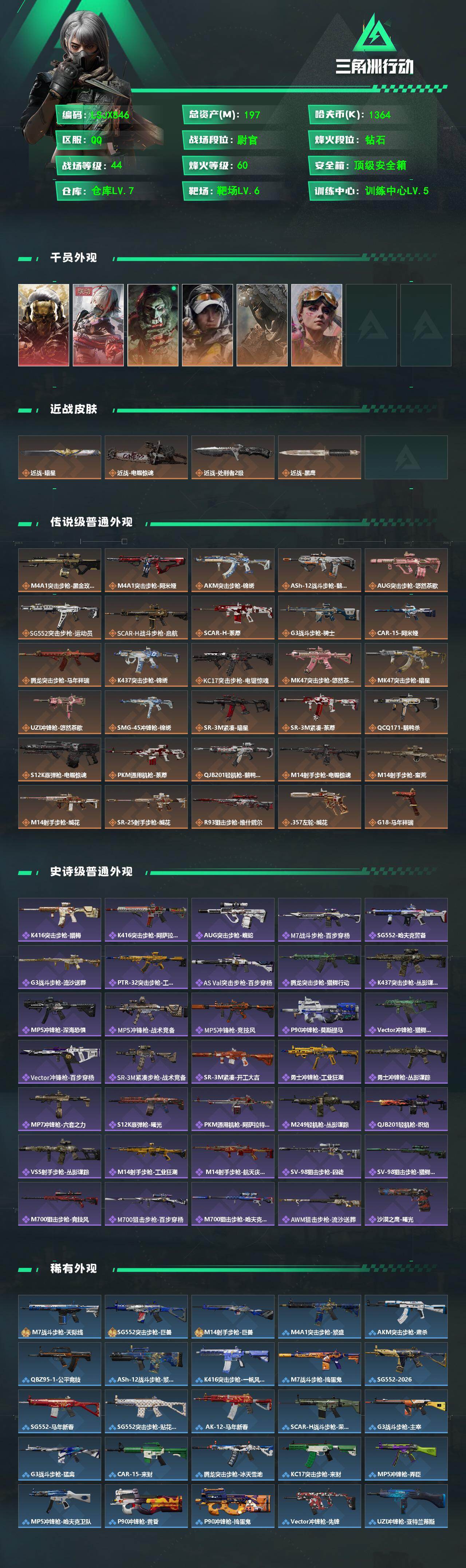 197m总资产-1364k哈夫币-60烽火等级-钻石-44战场等级-尉官