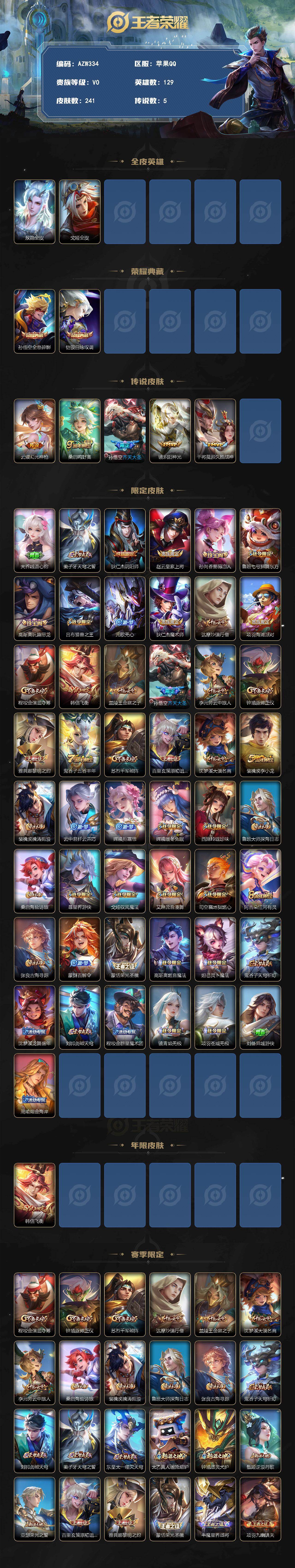 苹果Q-V0-永恒钻石III段位-129英雄-241皮肤-2典藏皮肤-5传说-7