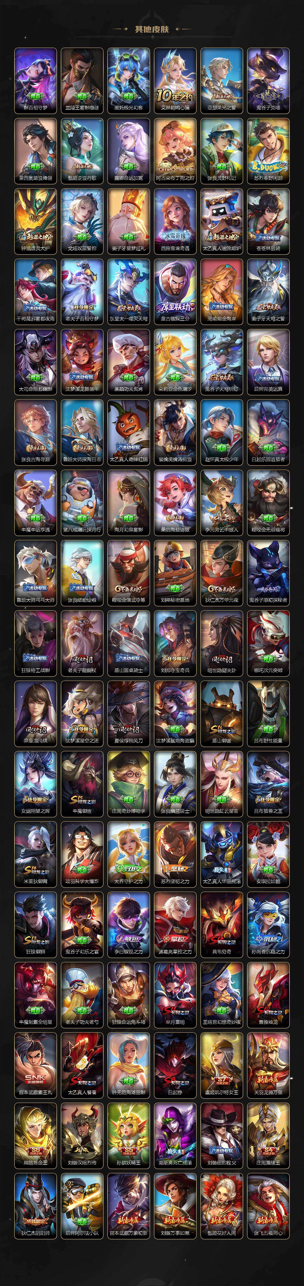 【限定皮肤】:白起狰,姜子牙天穹之誓,狄仁杰阴阳师,虞姬凯尔特女王,赵云皇家上将,嬴政优雅恋人,嬴政白昼王子,庄周蜃楼王,高