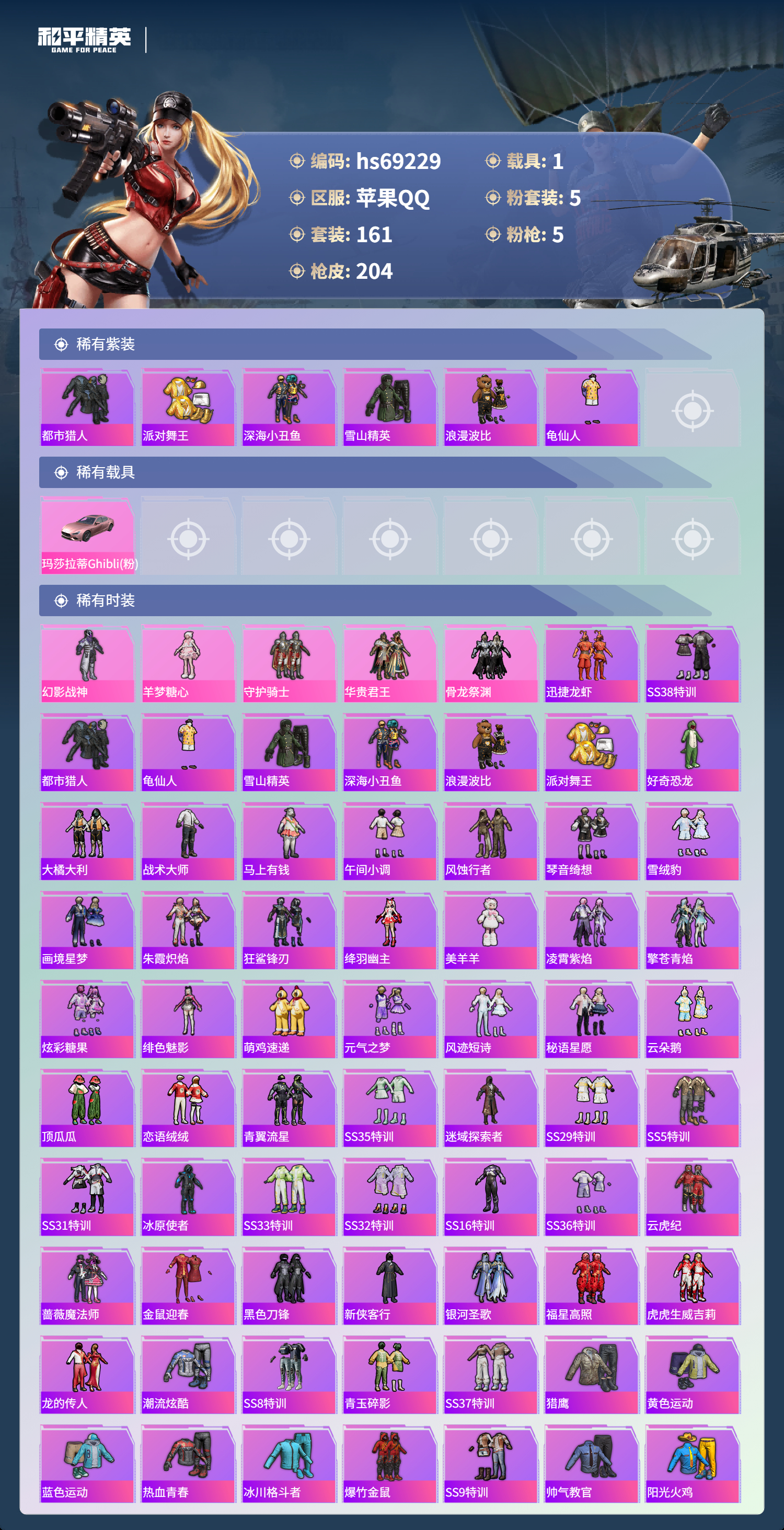 苹果手Q-15王牌印记-有战神框-5粉装-5特效枪-1载具-63