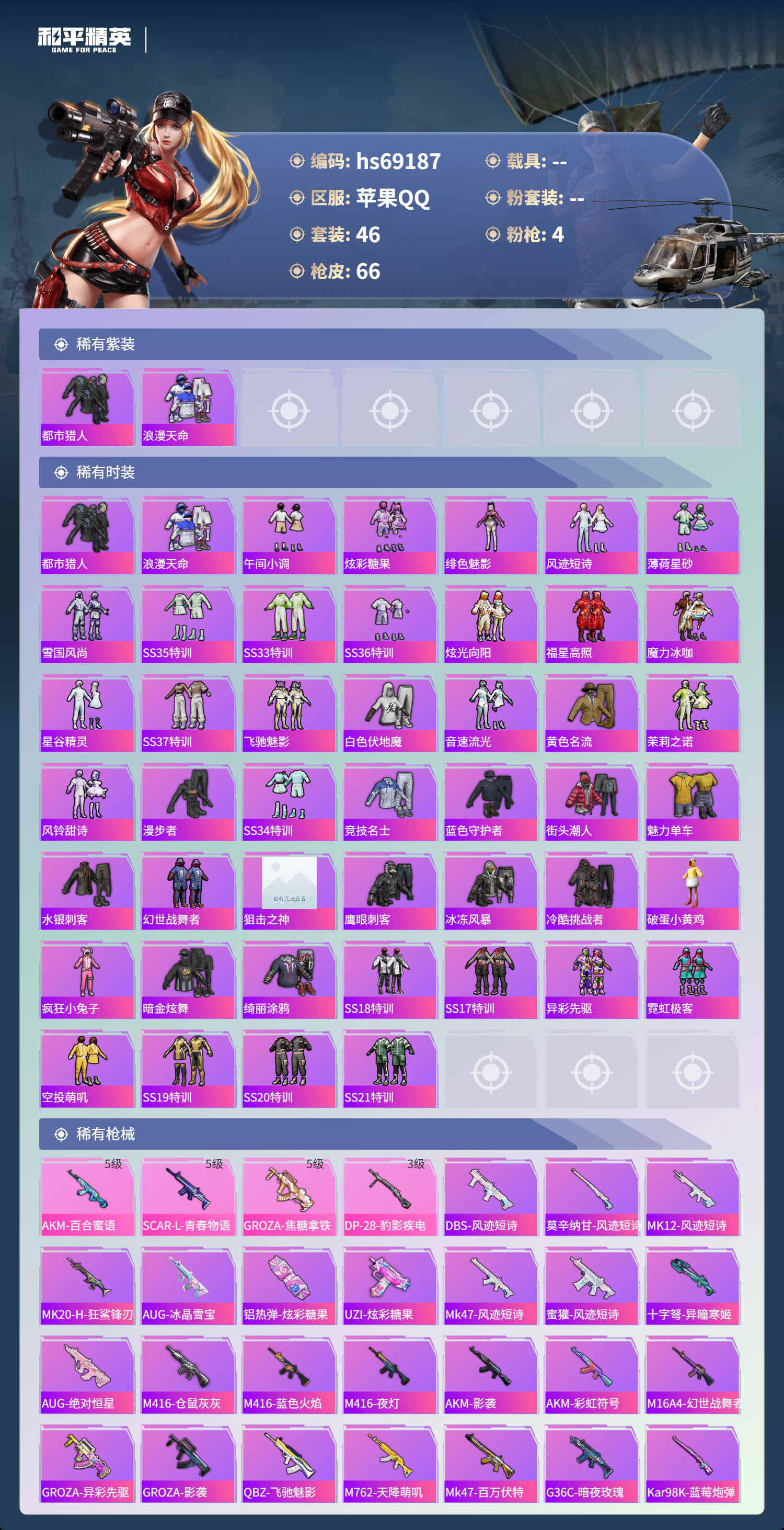 苹果手Q-2王牌印记-4特效枪-23092热力值-46套装-66