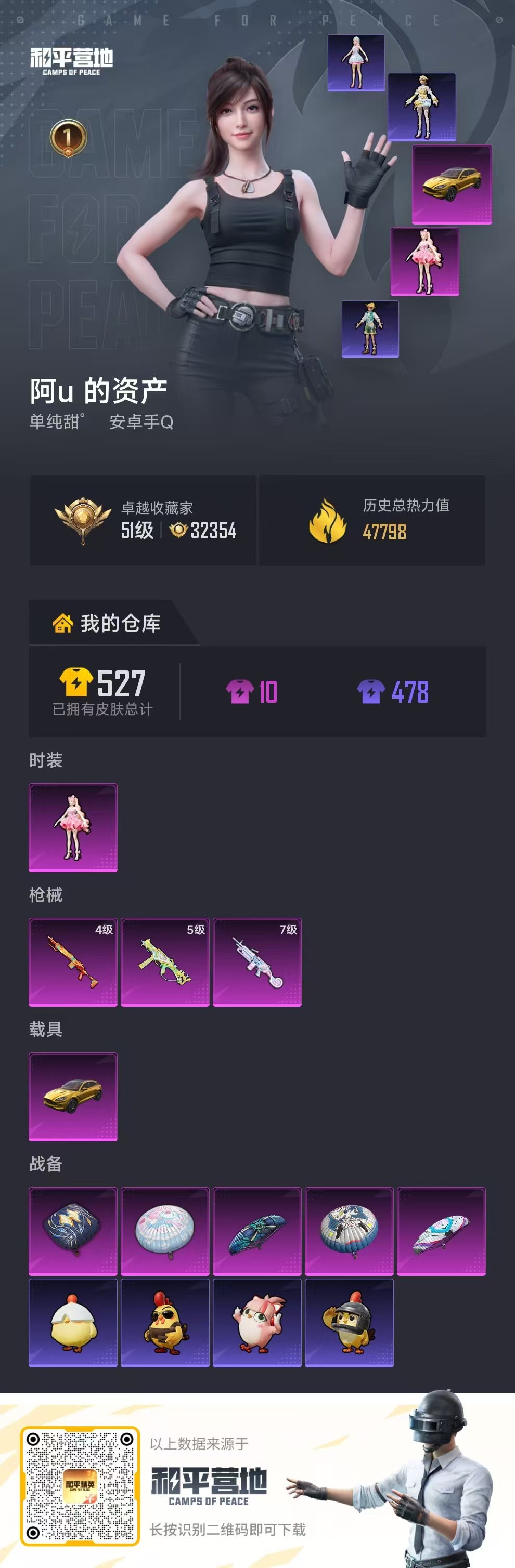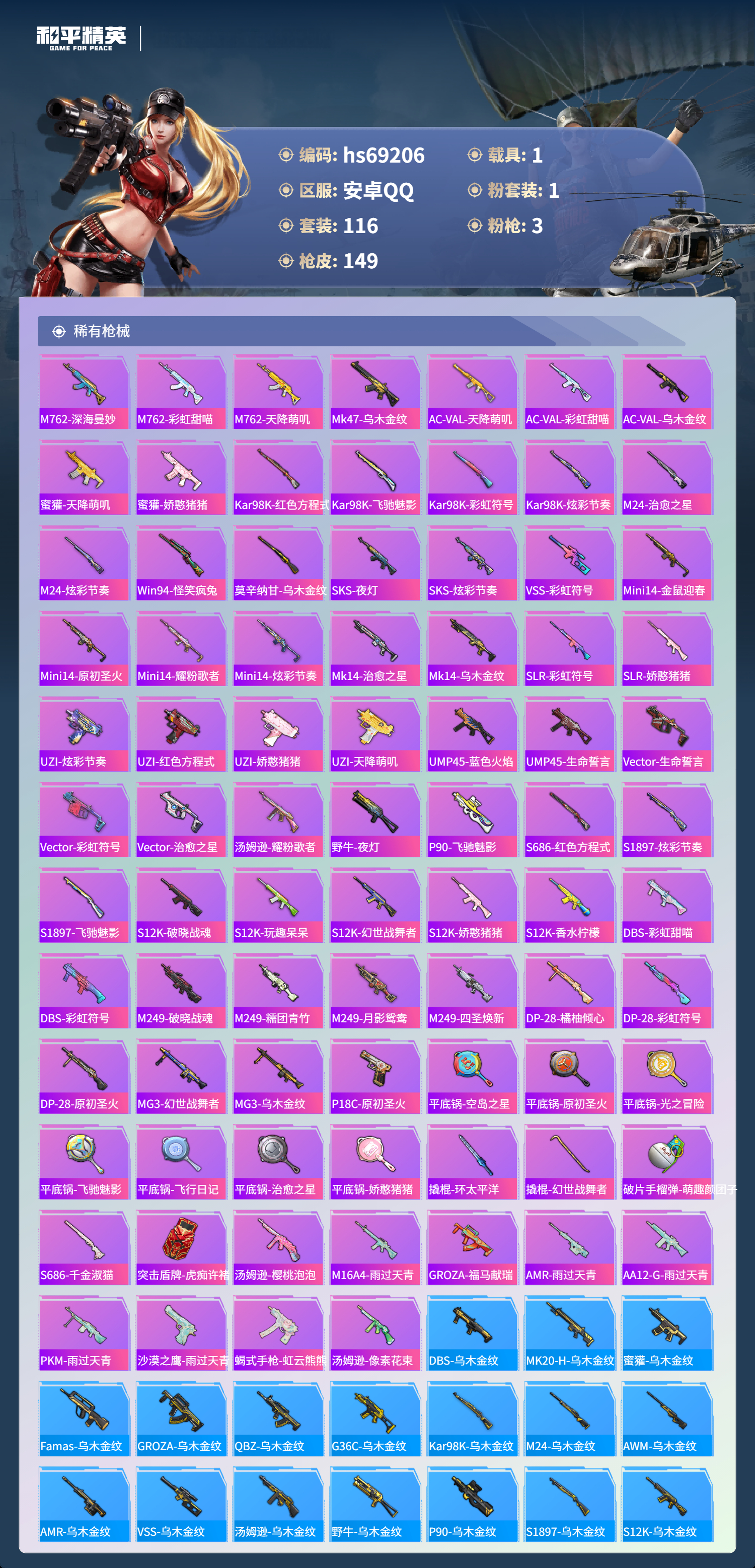 安卓手Q-1王牌印记-1粉装-3特效枪-1载具-47798热力值