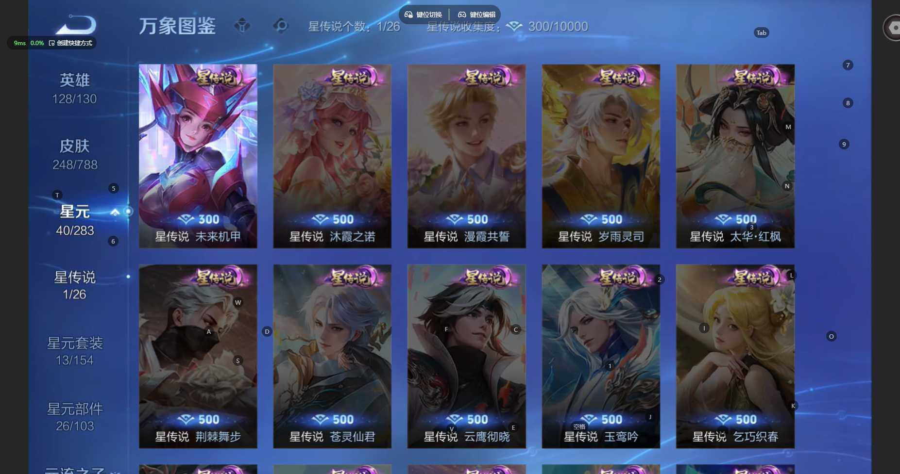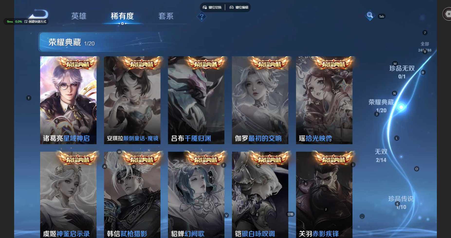 苹果WX-V8-永恒钻石V段位-128英雄-248皮肤-1典藏皮肤-2无双-1珍