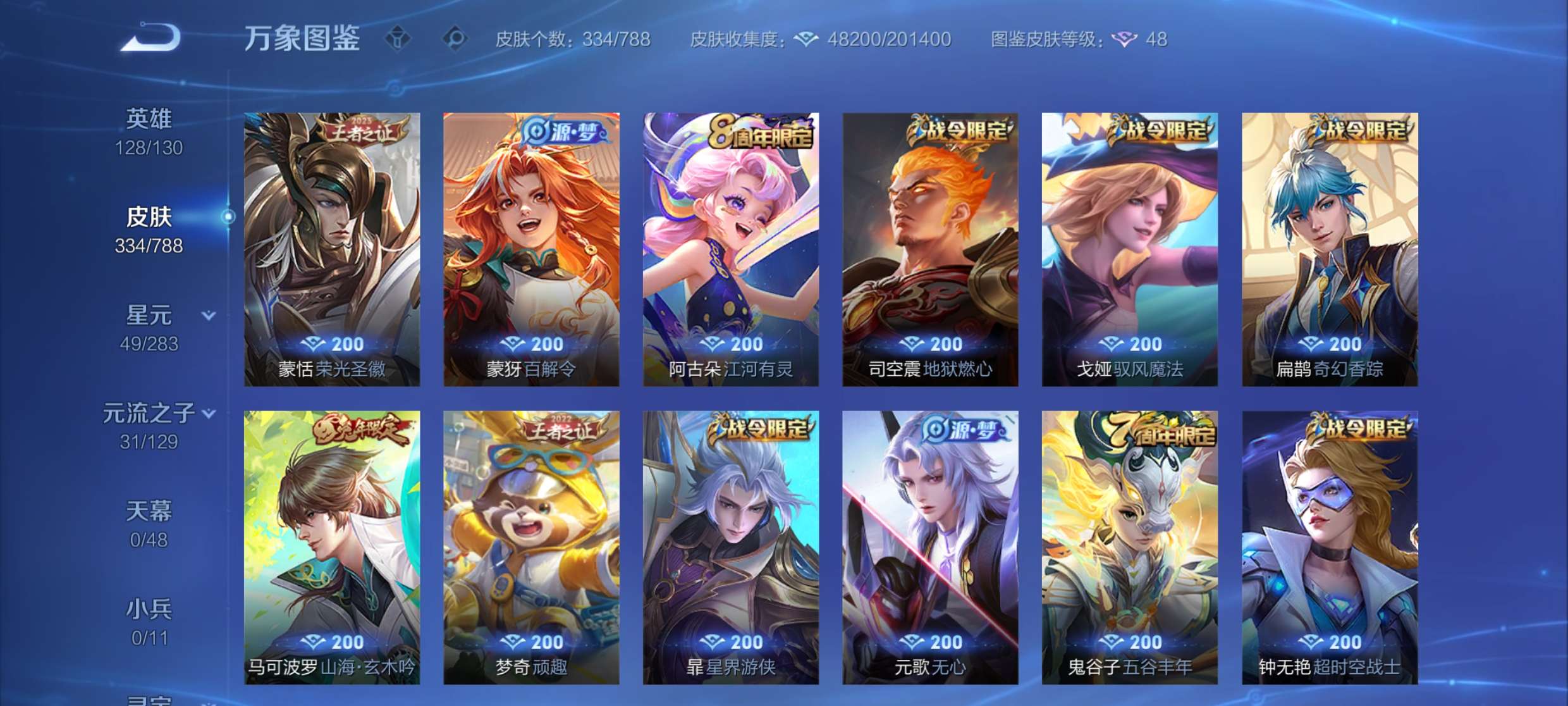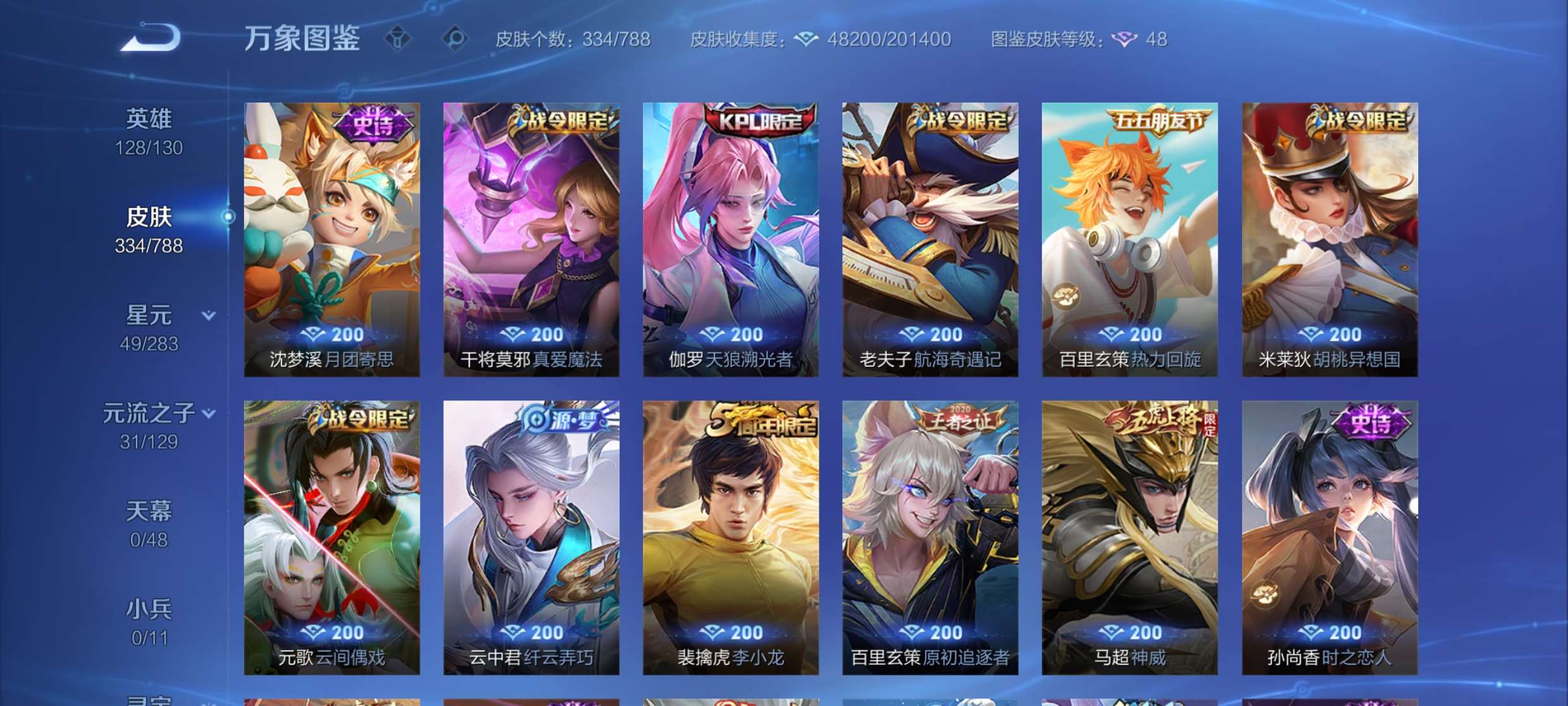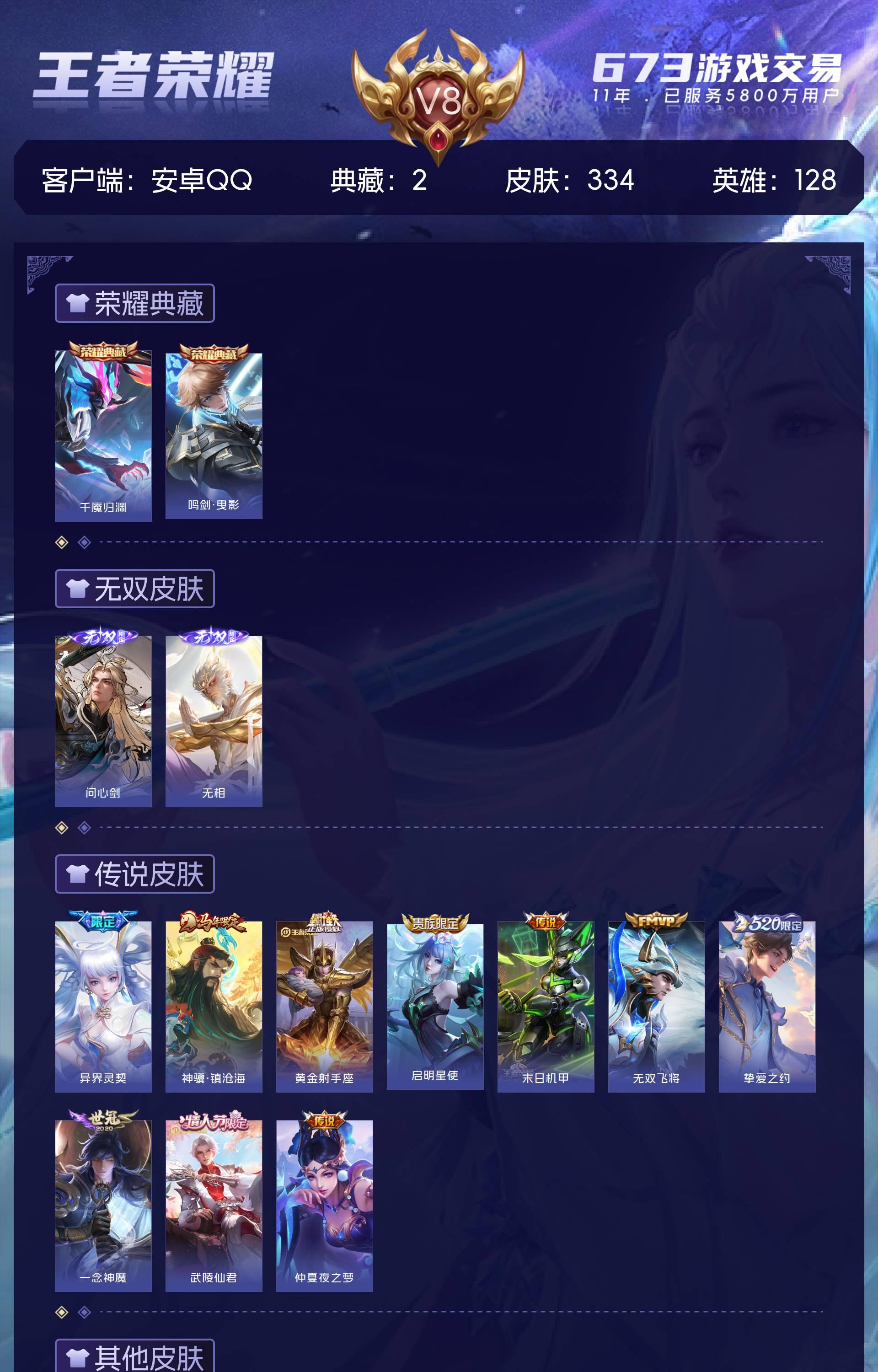 V8 皮肤334 英雄128 永恒钻石 荣耀典藏2 无双皮肤2 星传说3 传说10