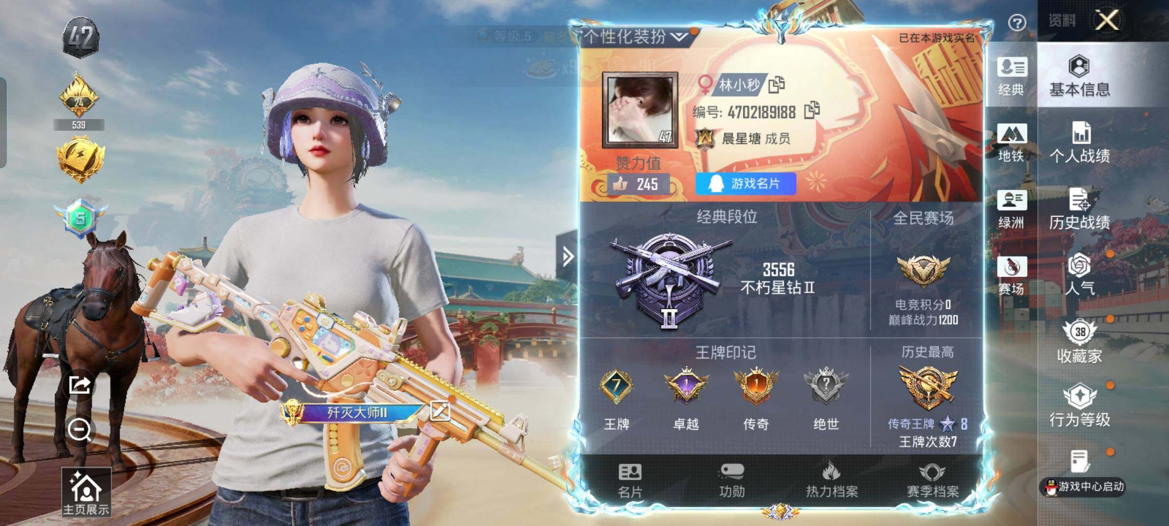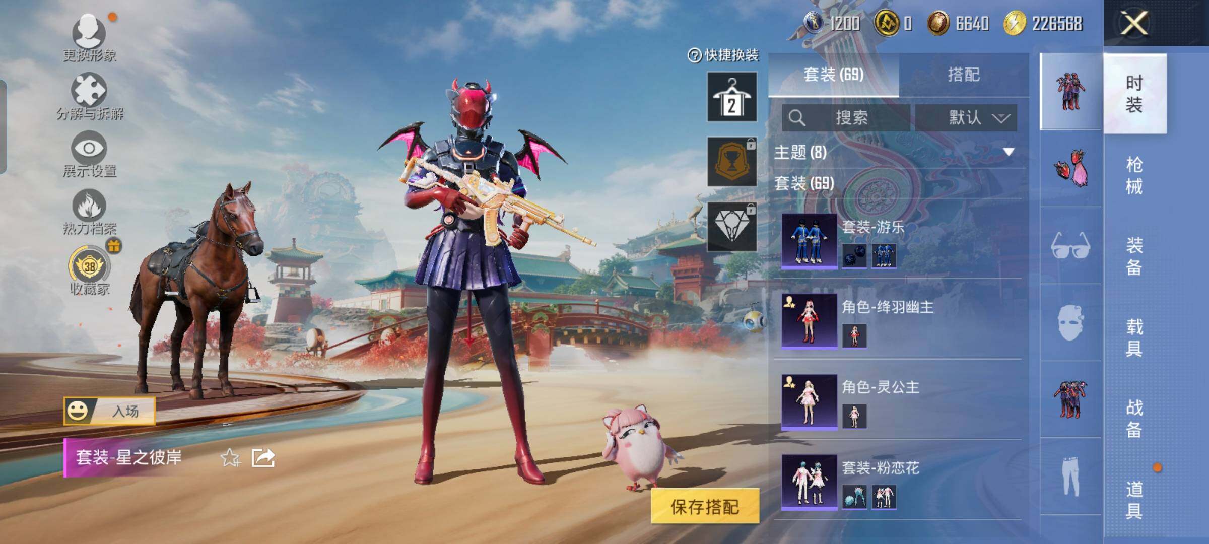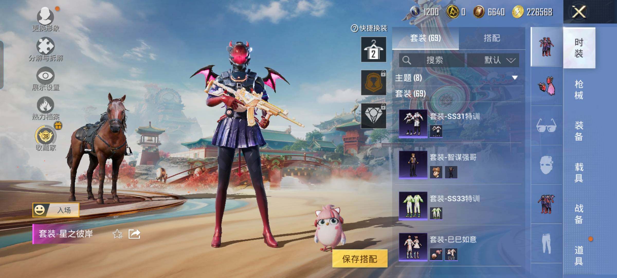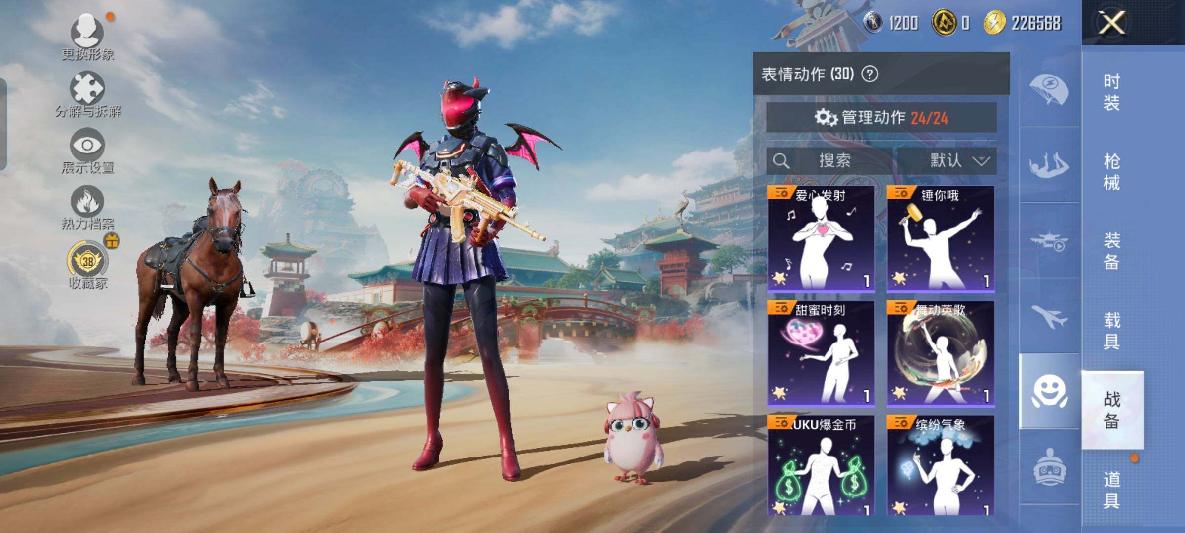 【7特效枪】 AKS-74U-森灵之息 (5级) Kar98K-巳巳如意 (5级) DP-28-豹影疾电 (5级) Mk14-福马献瑞 (5级) AA12-G-萌骑幻想 (1级) UMP45-萌骑冒