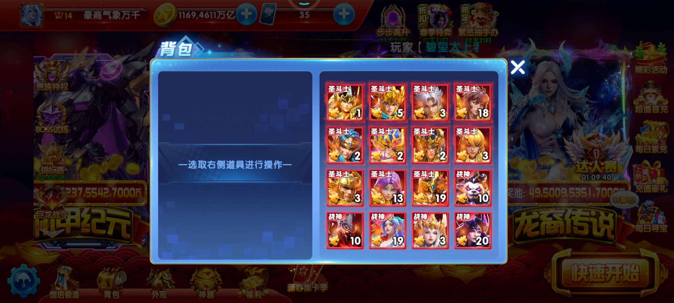 V14、45000亿炮倍、5级暗天使/刀手/童虎、1169万亿金币