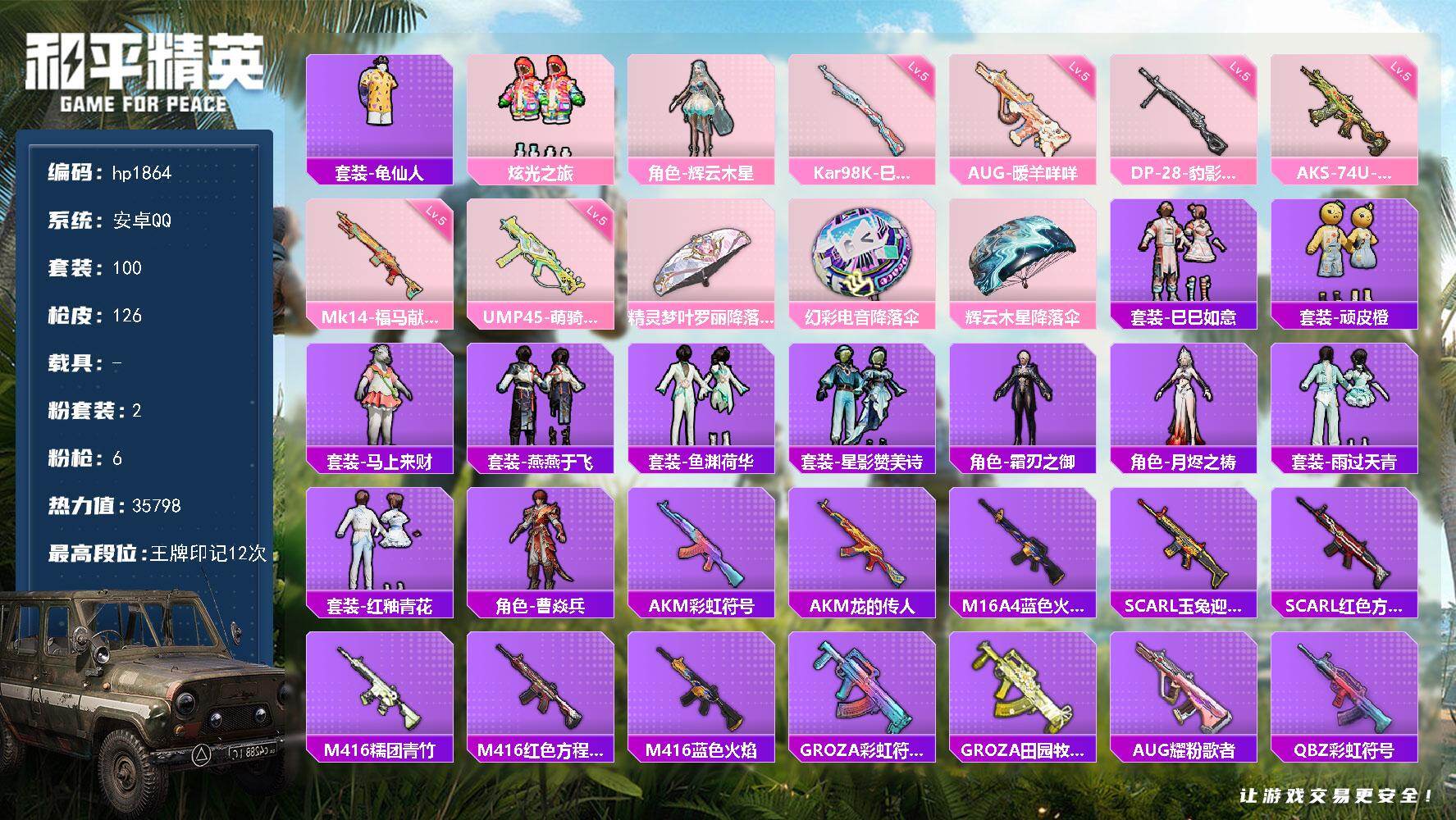 安卓 手Q-2粉装-6特效枪-0载具-0粉色飞行器-3579