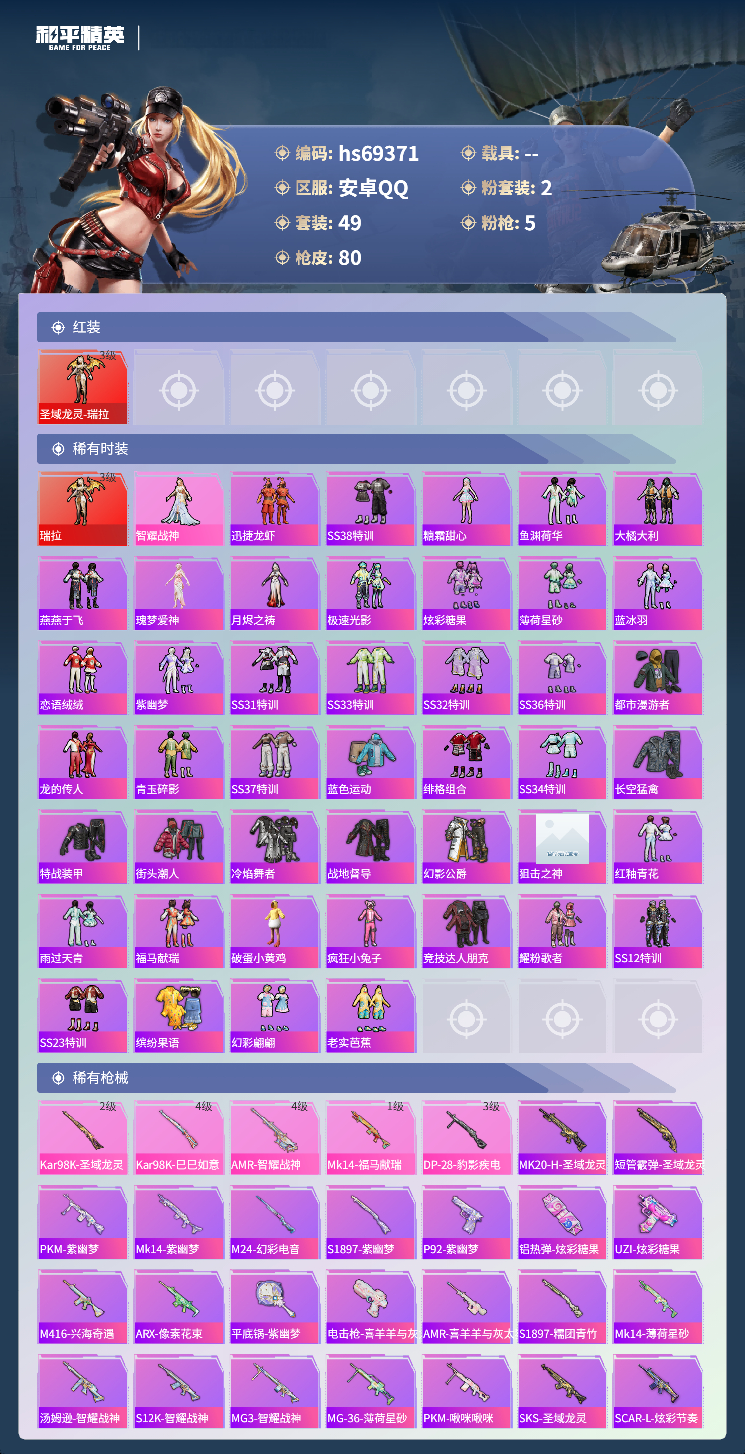 安卓手Q-2王牌印记-1红装-2粉装-5特效枪-25053热力值