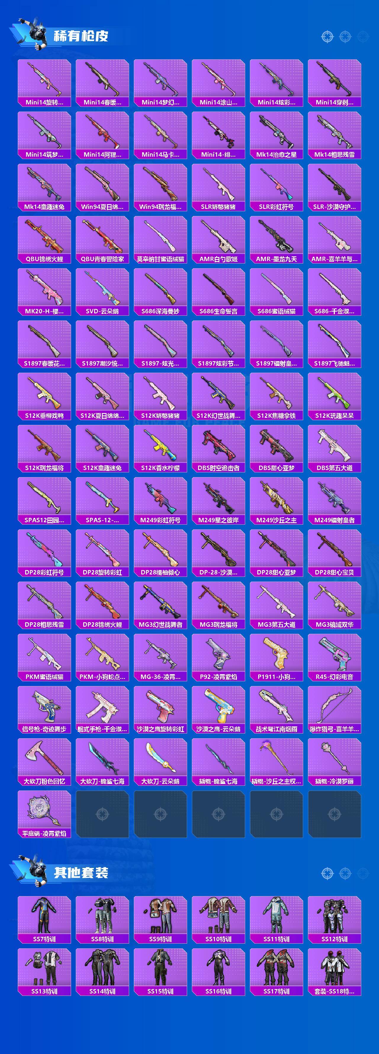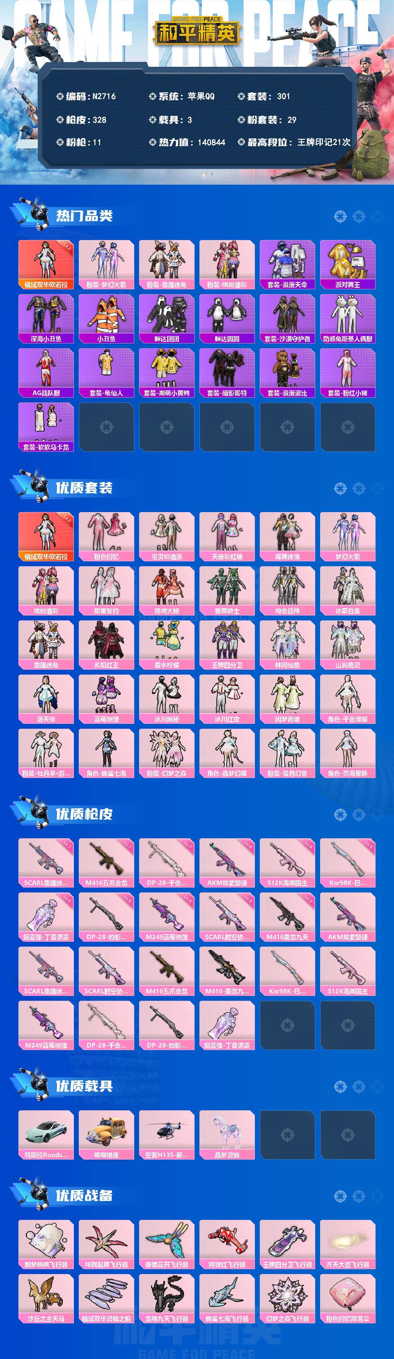 苹果 手Q-1神装-29粉装-11特效枪-3载具-12粉色飞行器-140844热力值-21王牌印记-301套装-328枪皮