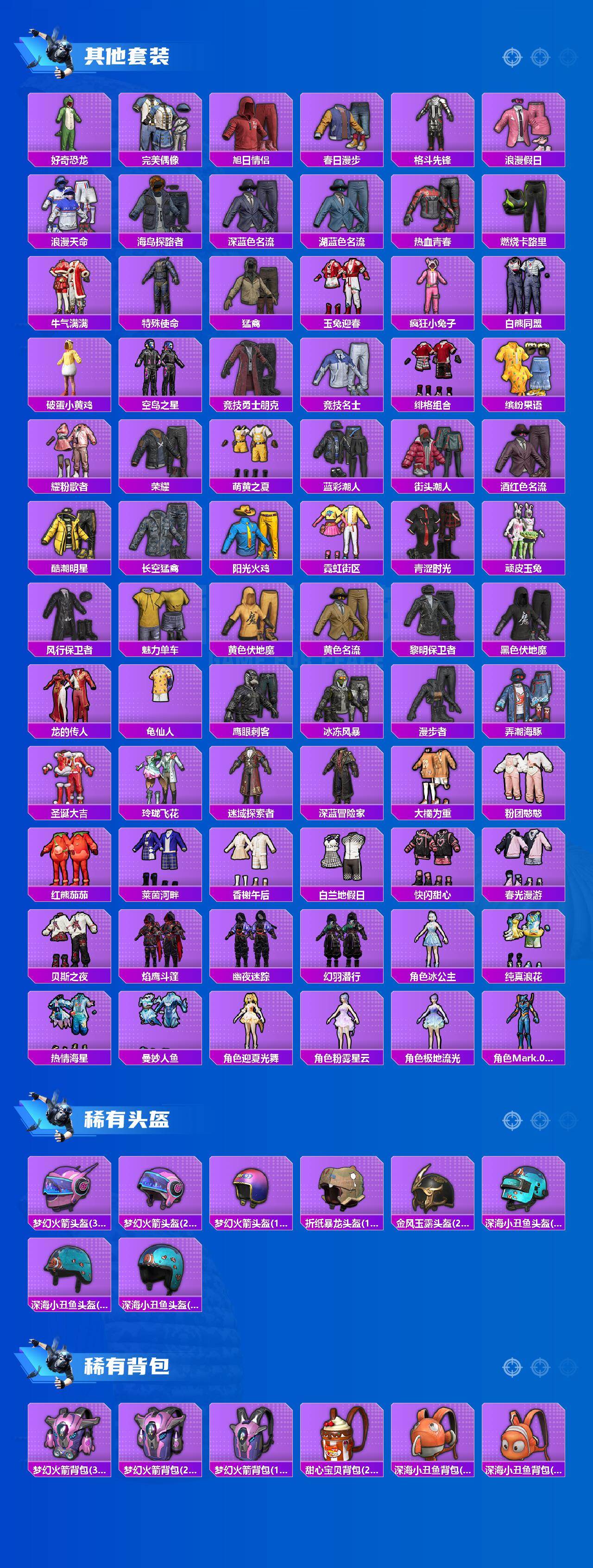 【热门品类】:粉装-梦幻火箭,粉装-缤纷油彩,套装-浪漫天命,套装-派对舞王,套装-小丑鱼,套装-龟仙人,角色-Mark.06,套装-红熊茄茄