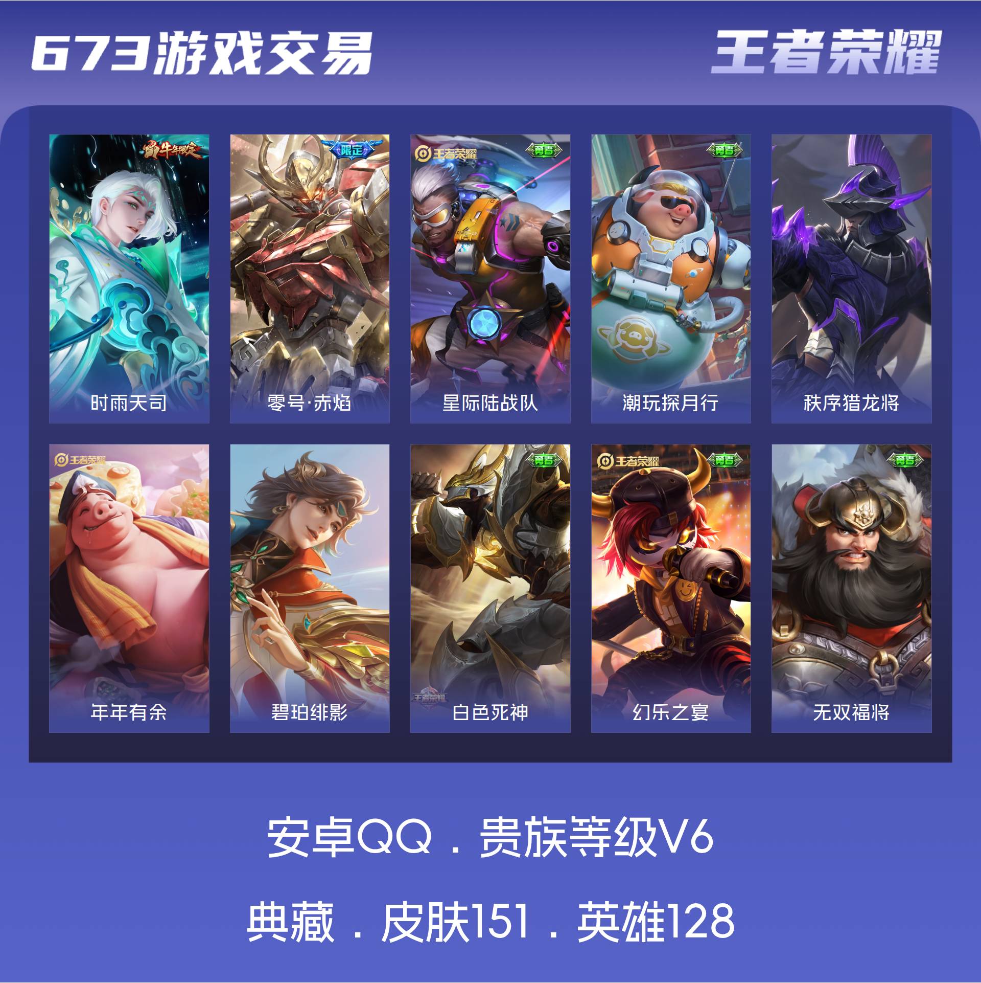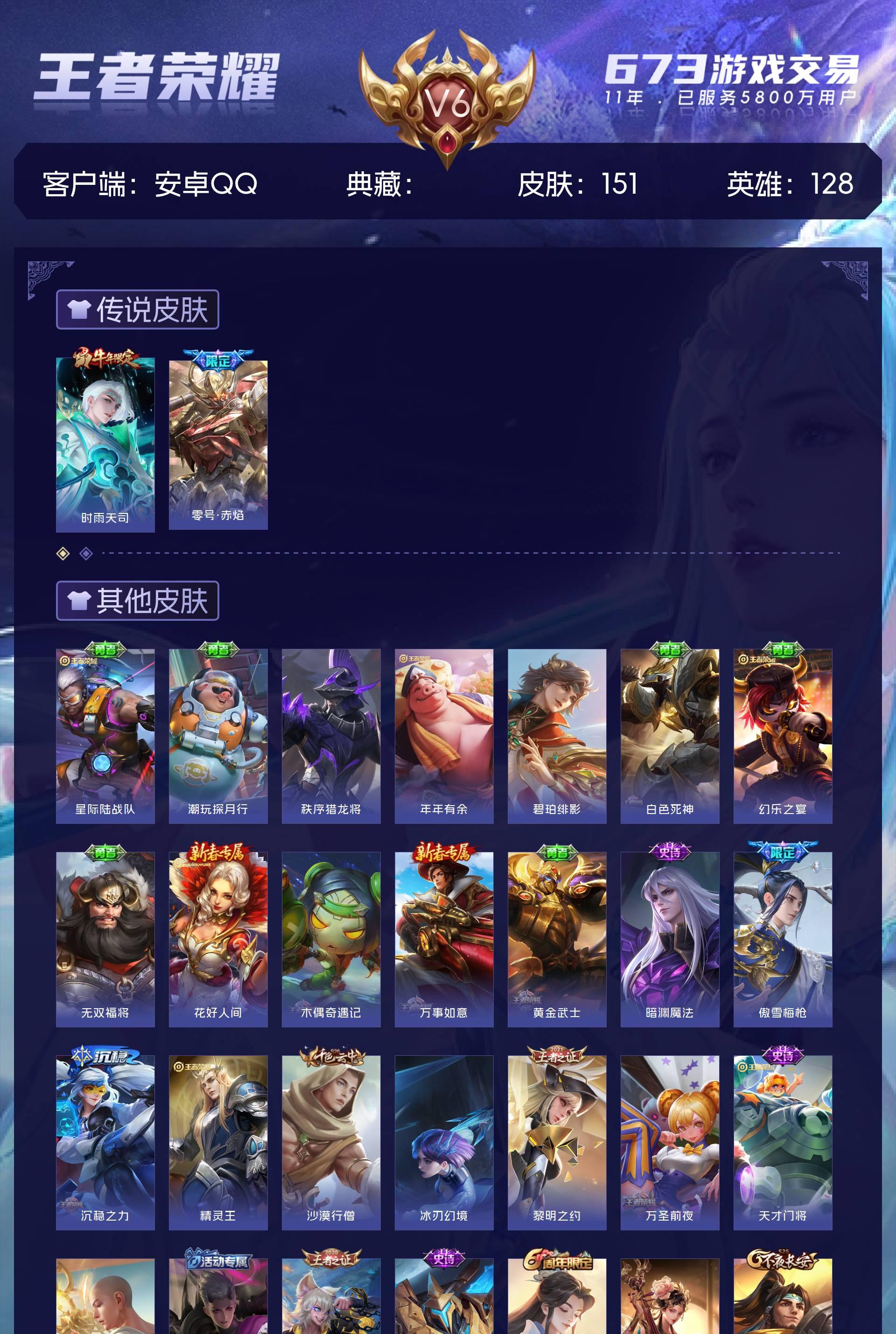 V6 皮肤151 英雄128 永恒钻石 传说2