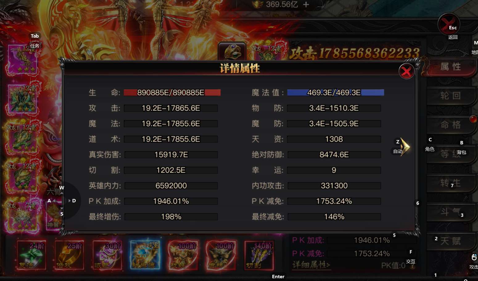 公测服1.8万亿大道士,1.6万亿真伤,带800探宝令,1.9万传奇币,源力17层