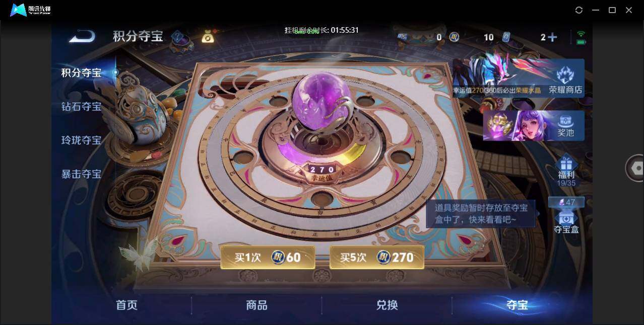 【W6954】亮点:4.5k低场次.夺宝幸运值270(热门皮肤)武则天.踏浪归