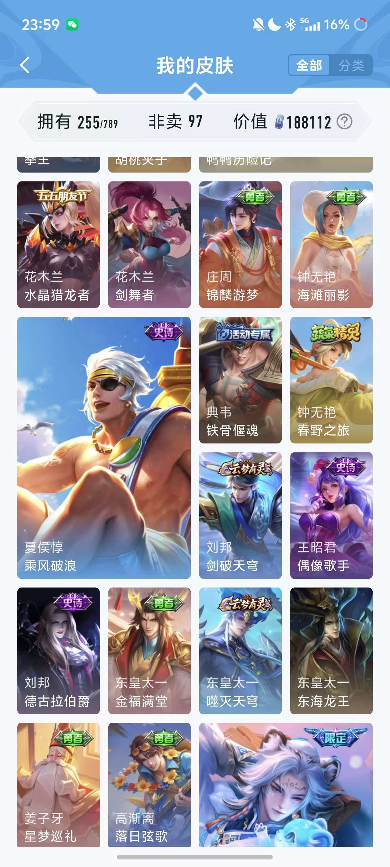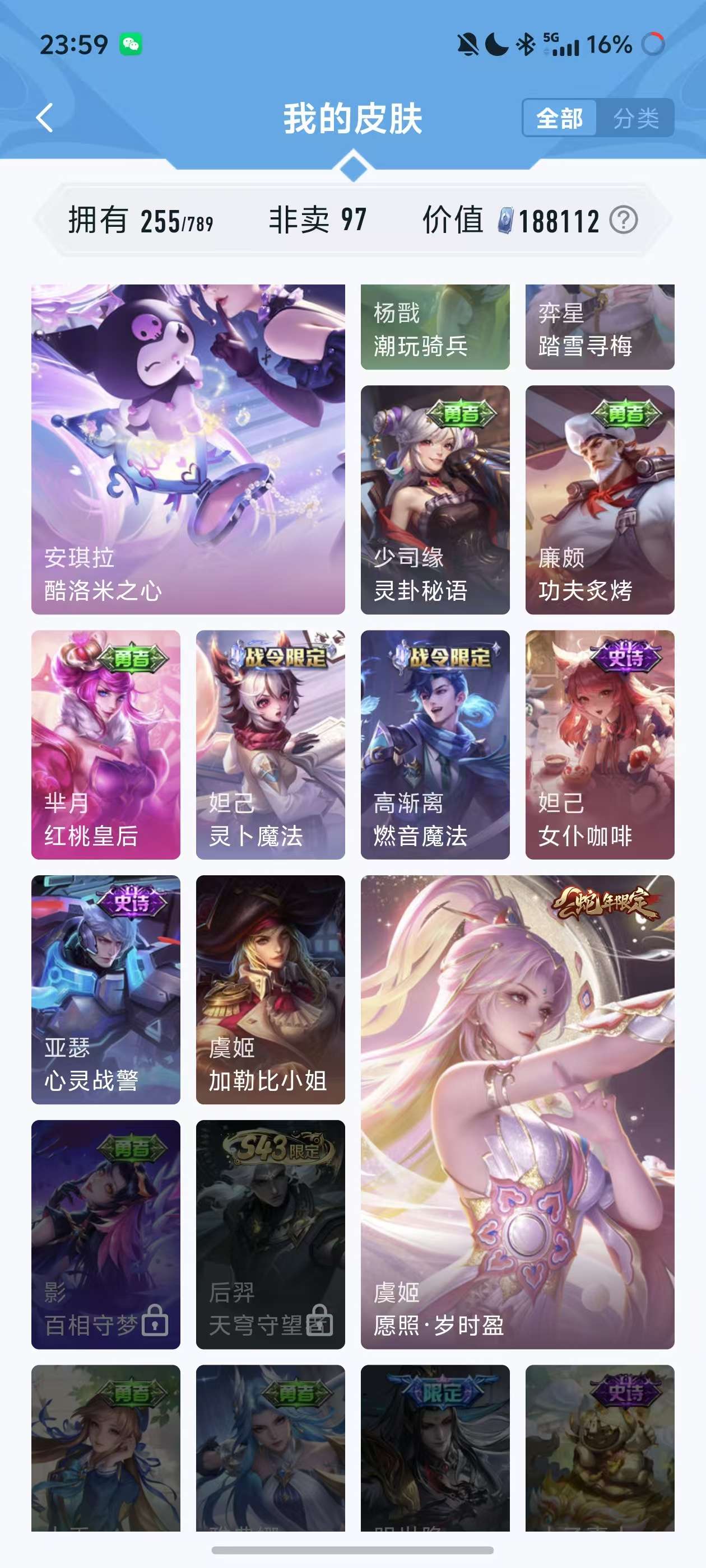 部分皮肤是大号送的,所以贵族等级低,不常玩