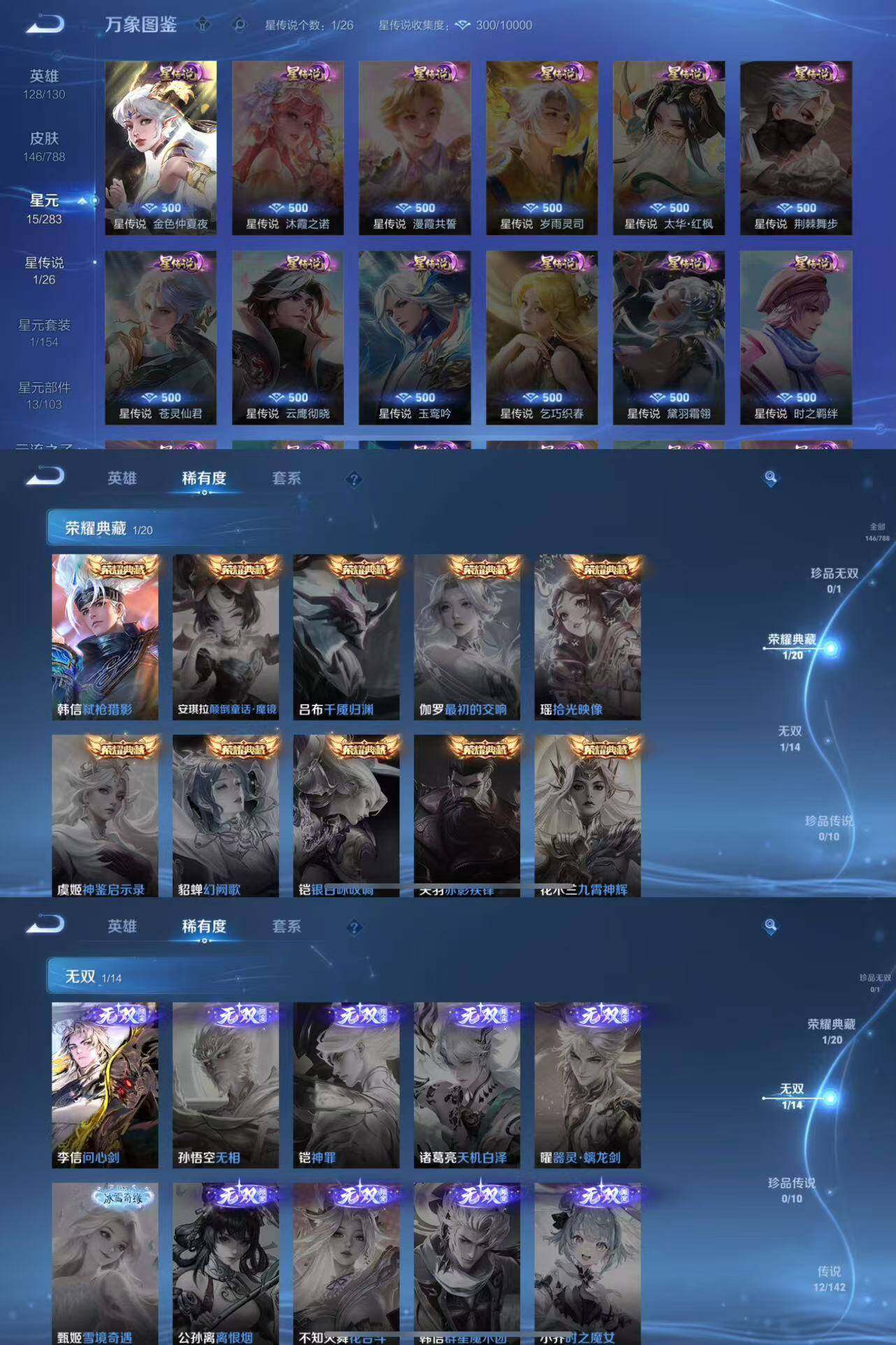 1典藏1无双12传说1星传说,弑枪猎影问心剑金色仲夏夜踏浪归神骥镇沧海启明星使黄金狮子座地狱火超时空战士黄金射手座