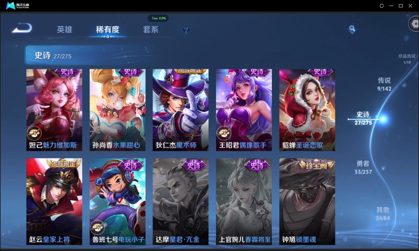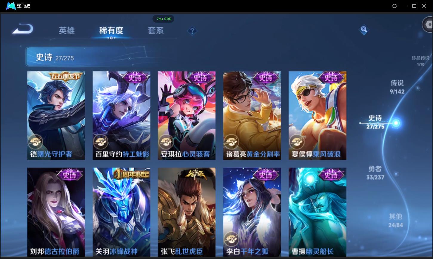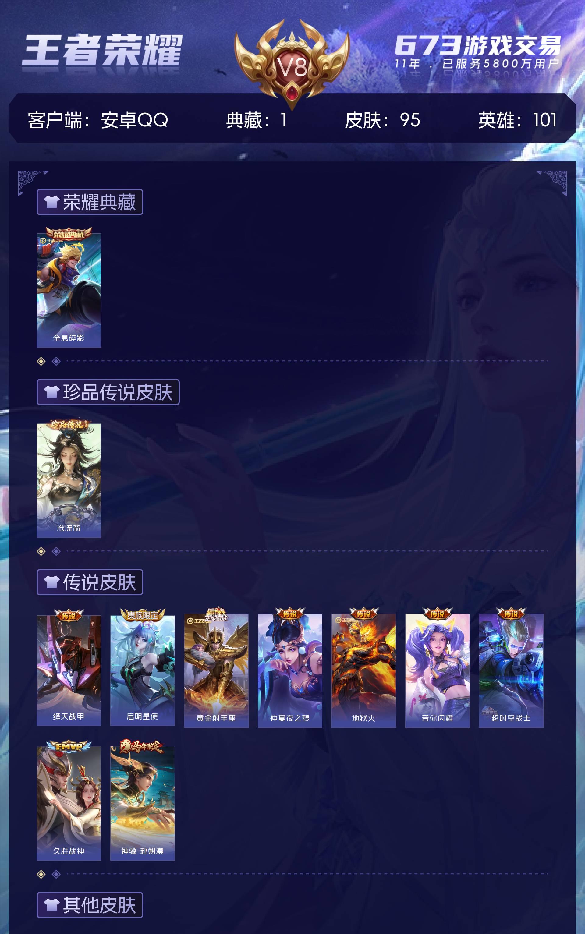 可二-V8-95皮肤-1典藏-1珍品传说-1星元-9传说-27史诗-1传说天幕-6个性按键