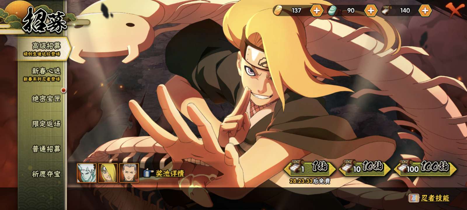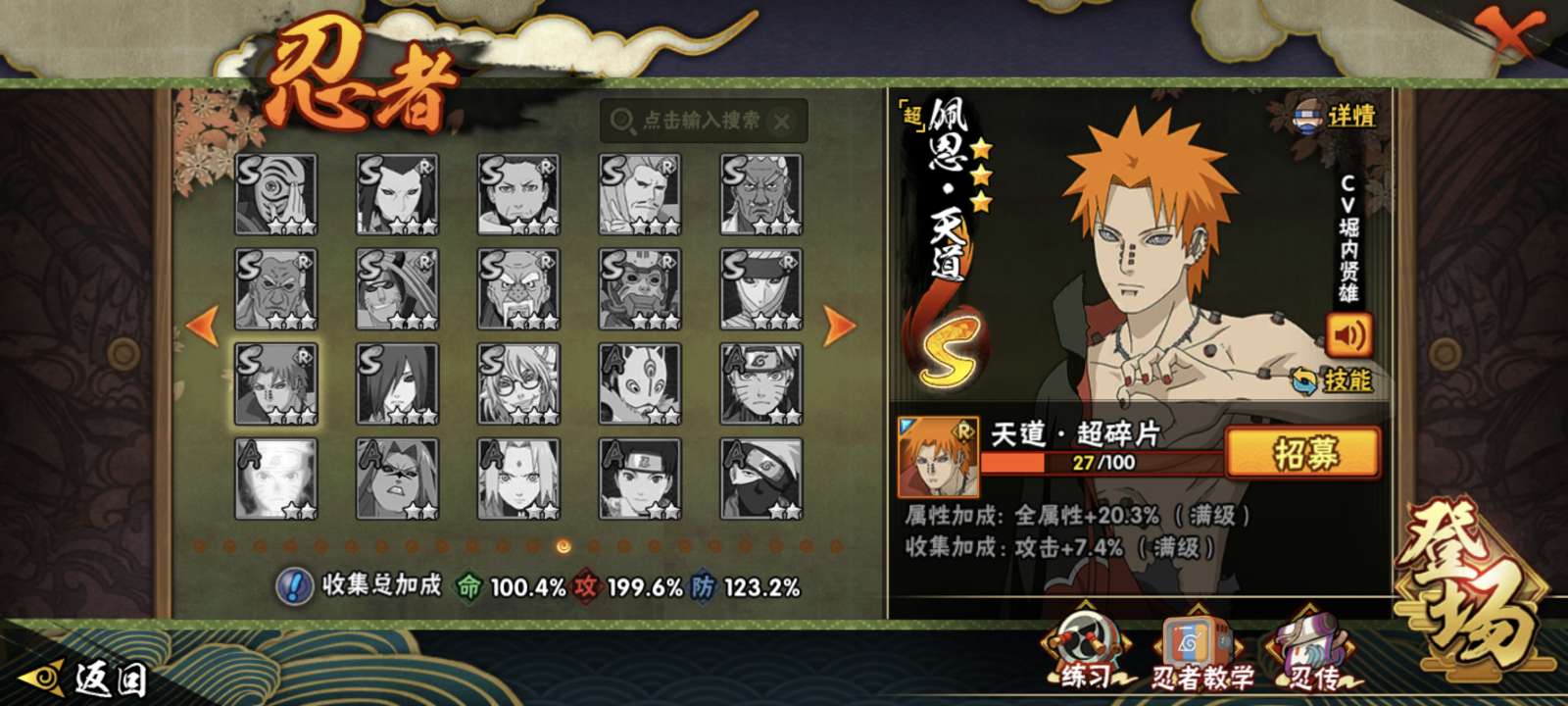 36个S,7个198A忍,1个祈愿忍者(忍战凯)1个298暴怒小孩,还有最终章主场景,外加140抽。