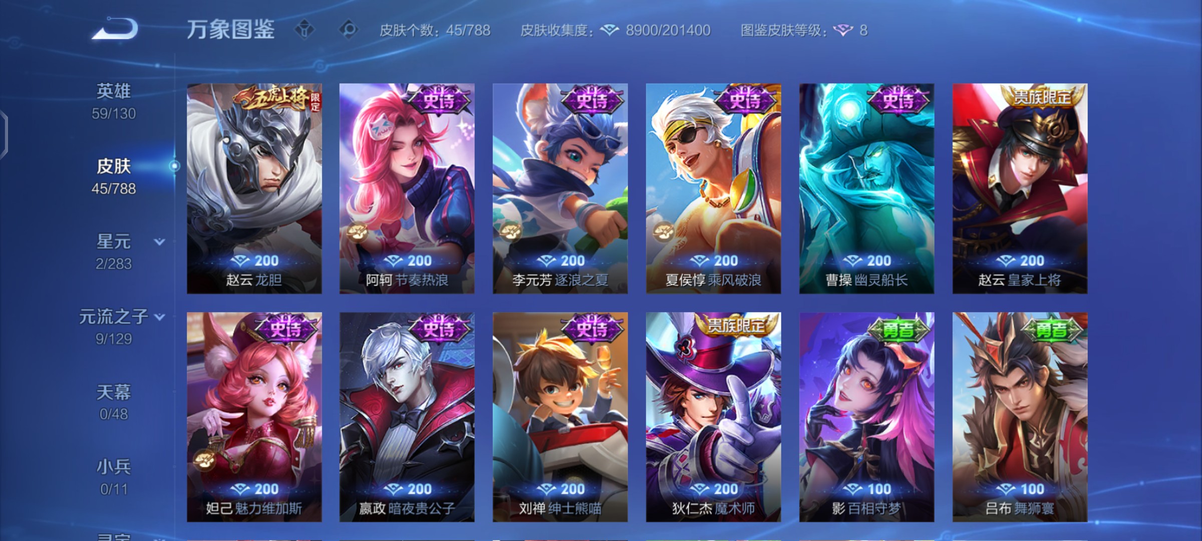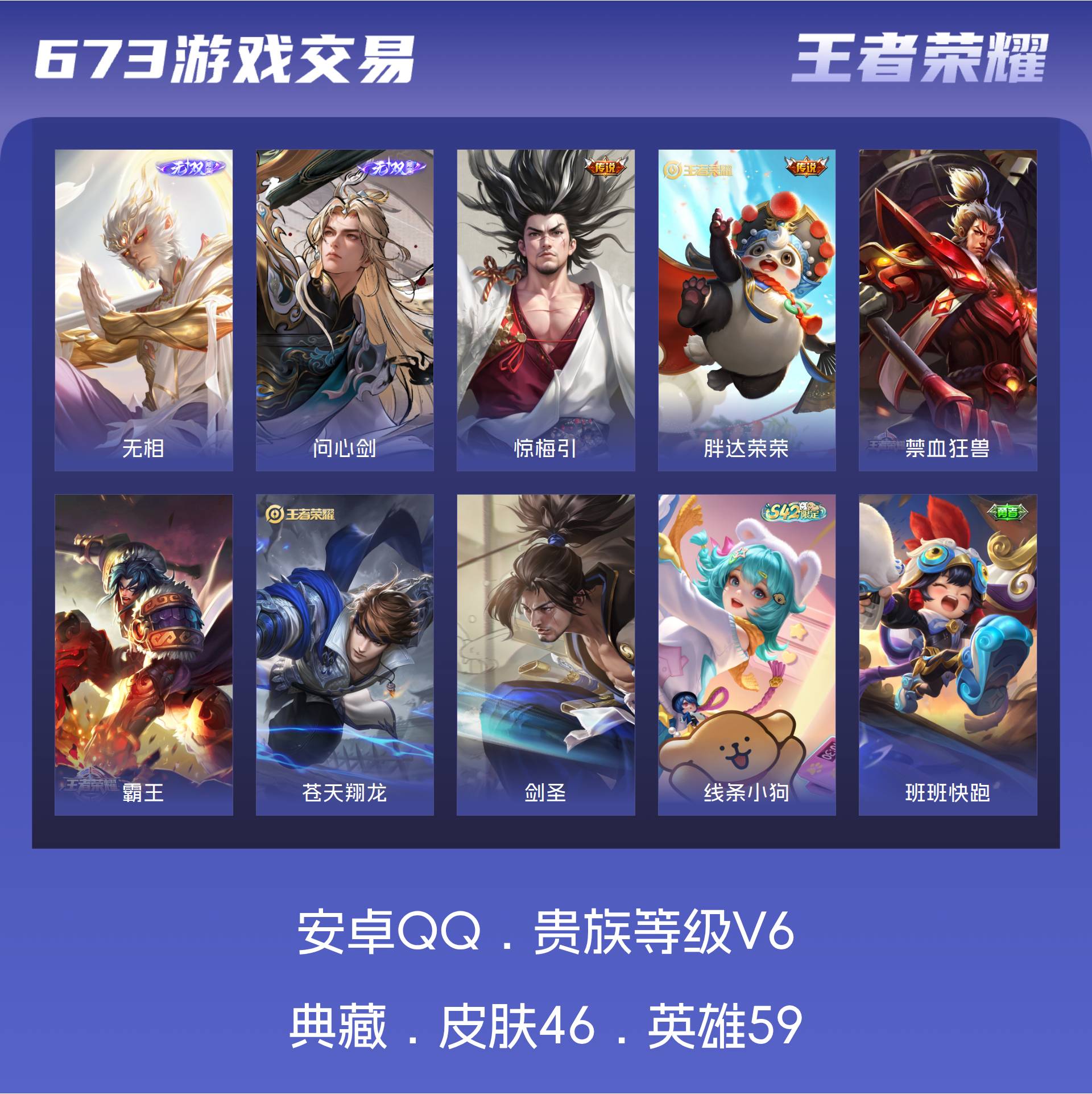 V6 皮肤46 英雄59 永恒钻石 无双皮肤2 传说2