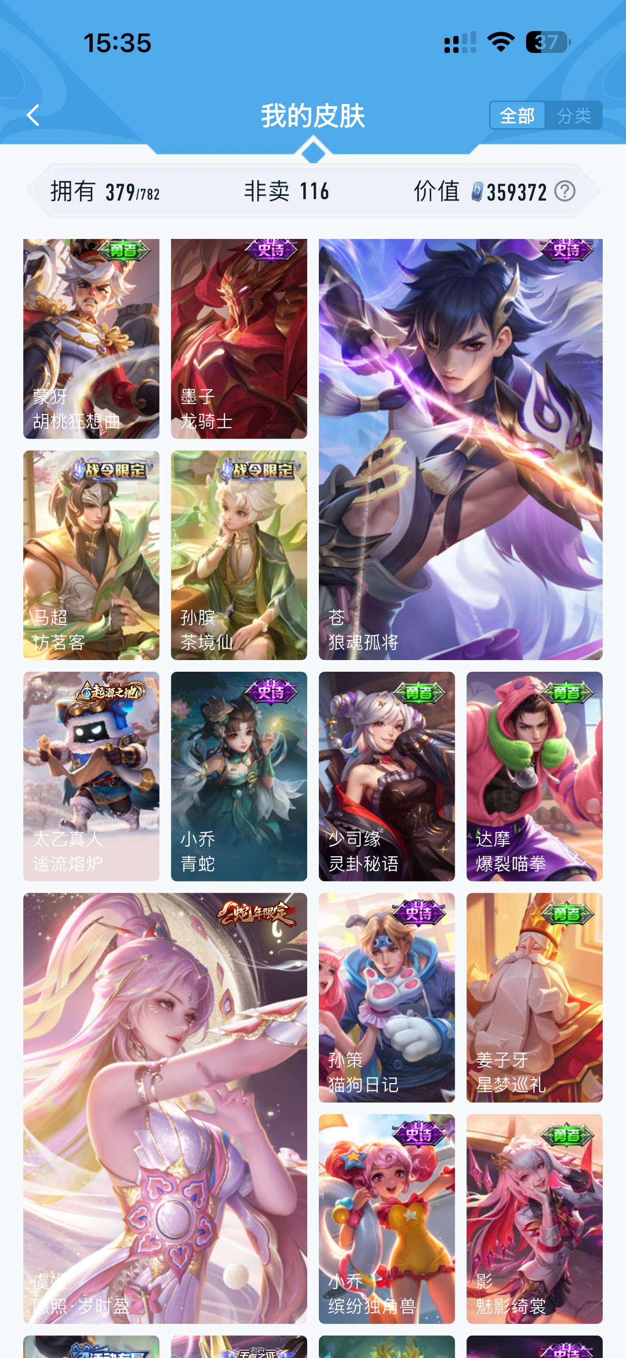 V10 皮肤383 英雄129 最强王者 荣耀典藏5 无双皮肤1 珍品传说1 星传说3 传说33