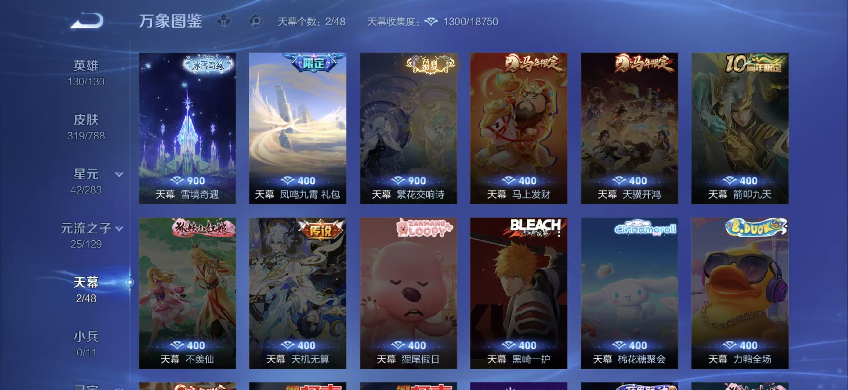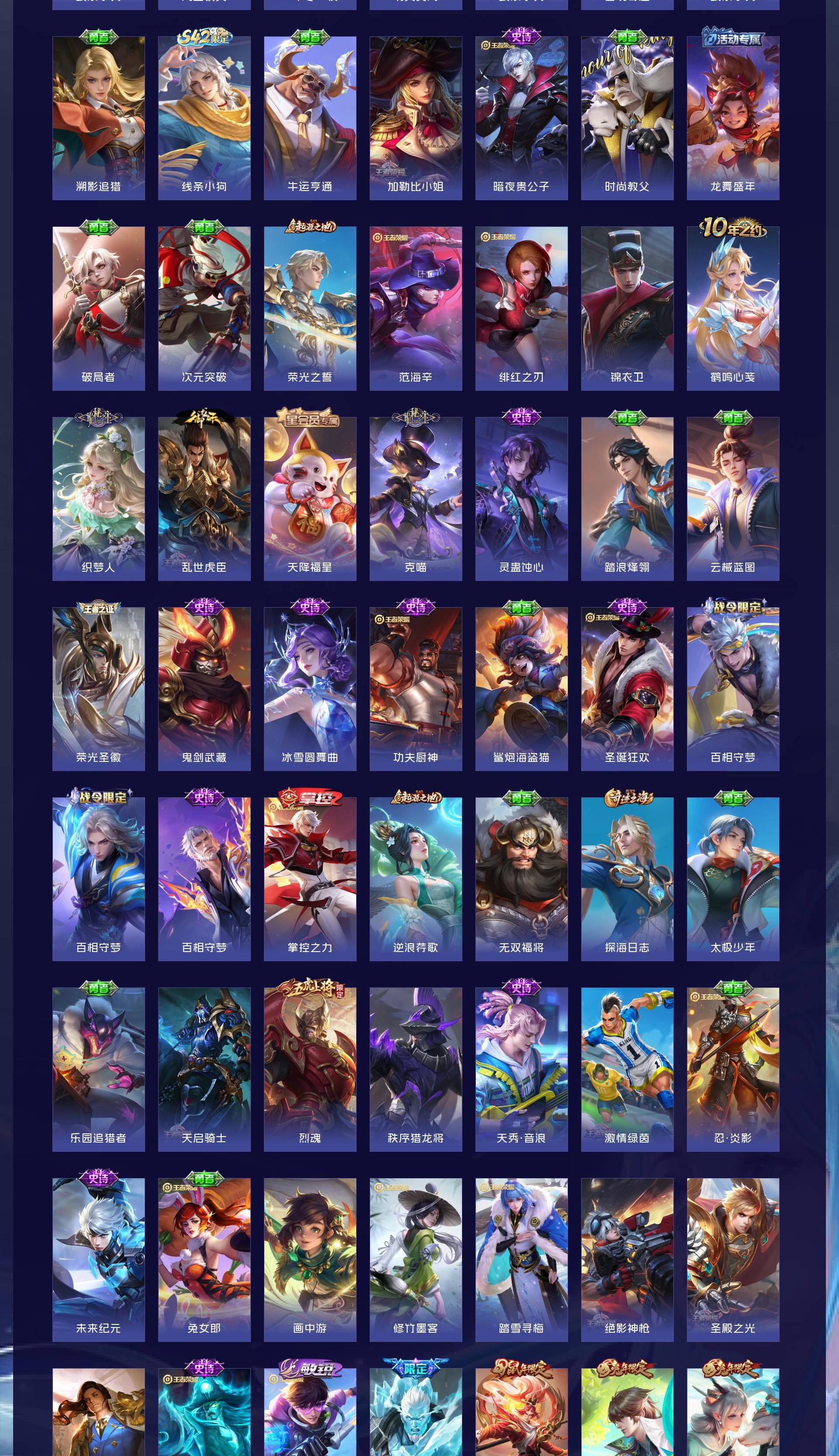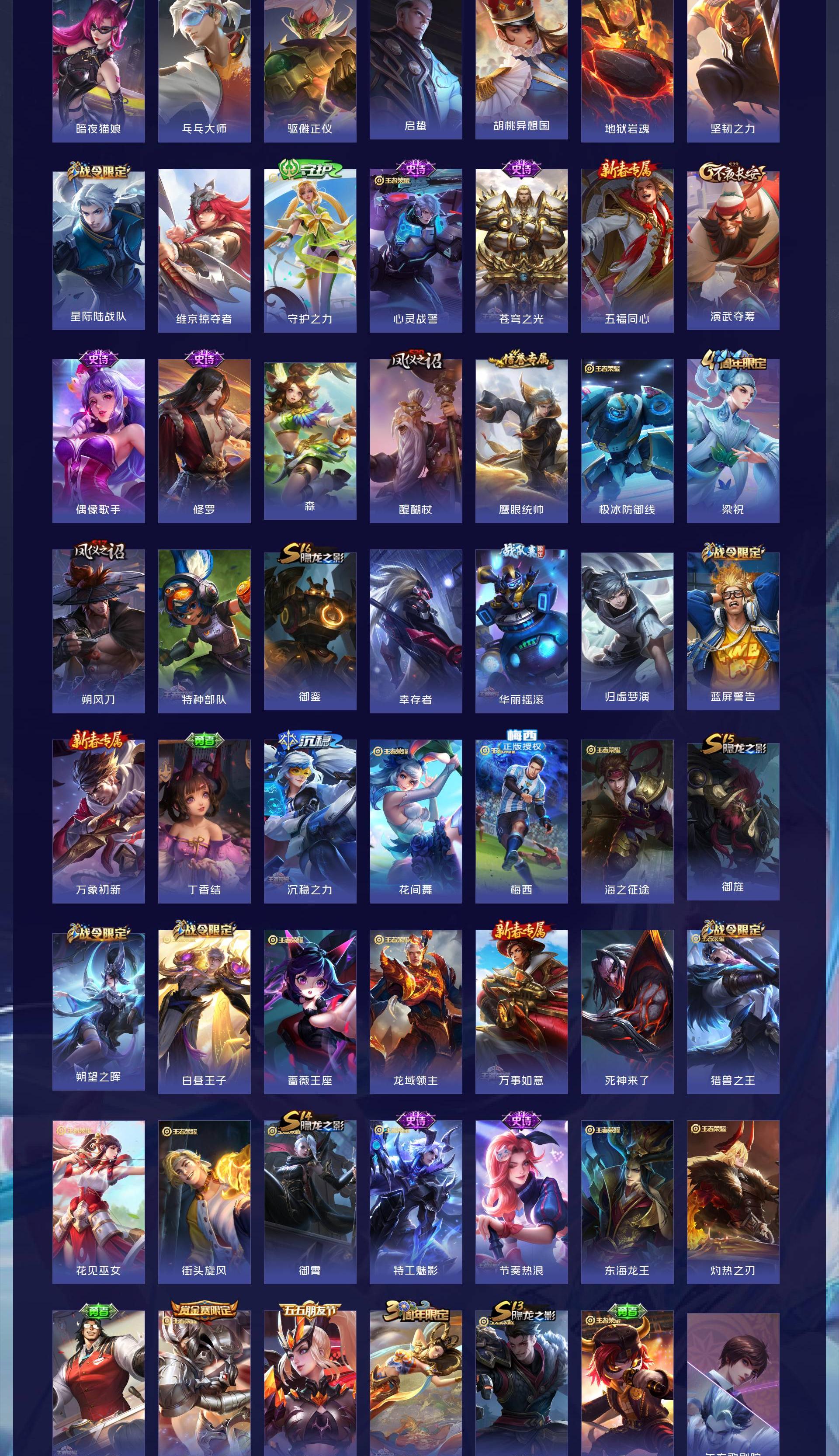 V10 皮肤319 英雄130 至尊星耀 荣耀典藏5 珍品无双1 无双皮肤8 传说38