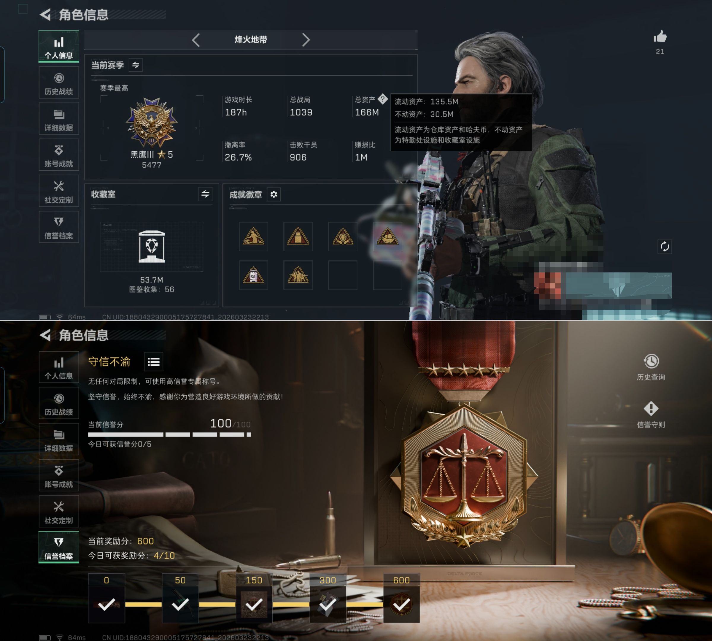 【166M 3干员 处刑者 暗星】三端互通-总价值166M-哈夫币15348k