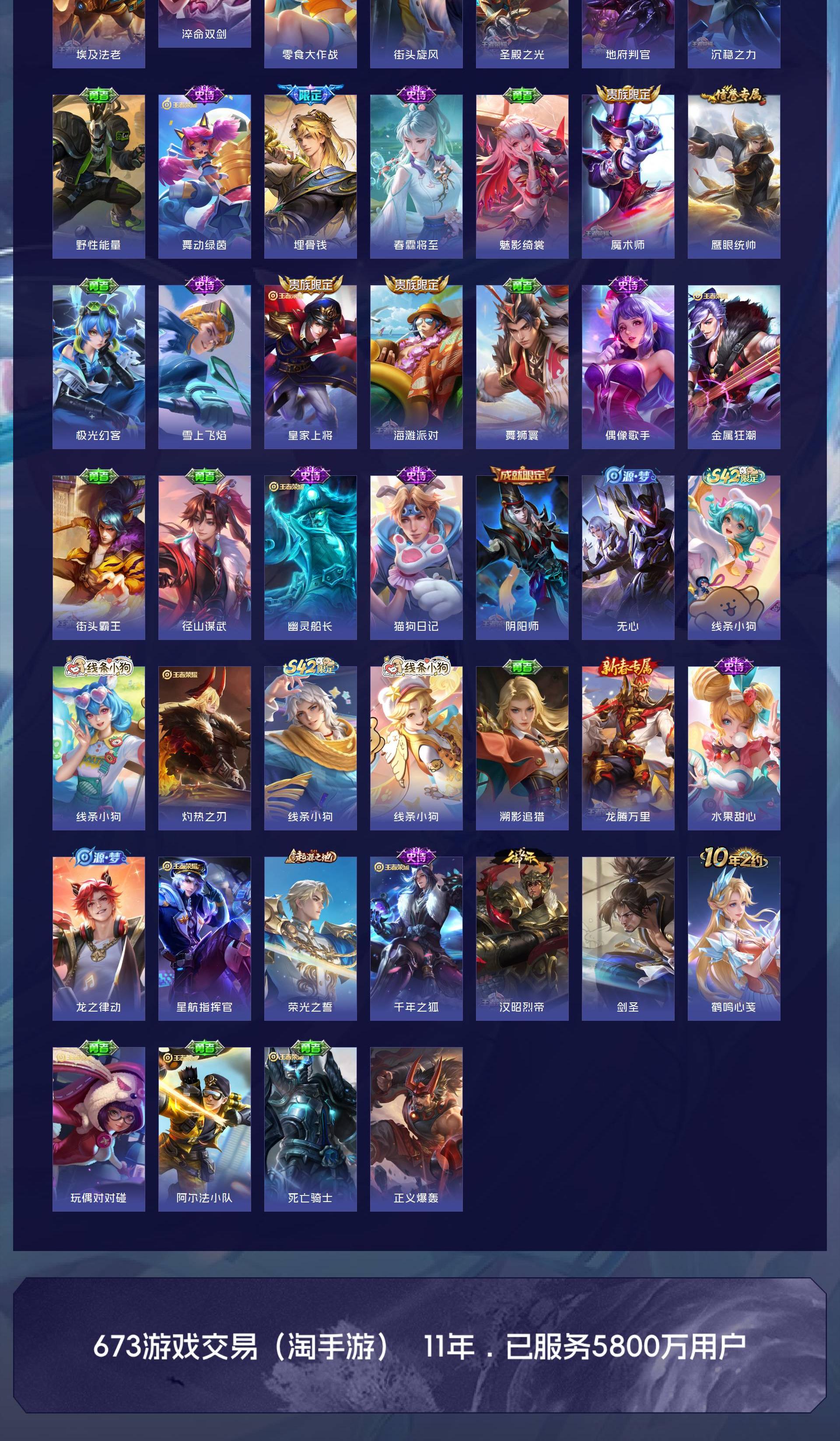 皮肤64 英雄73 绝世王者 无双皮肤3 珍品传说2 传说13
