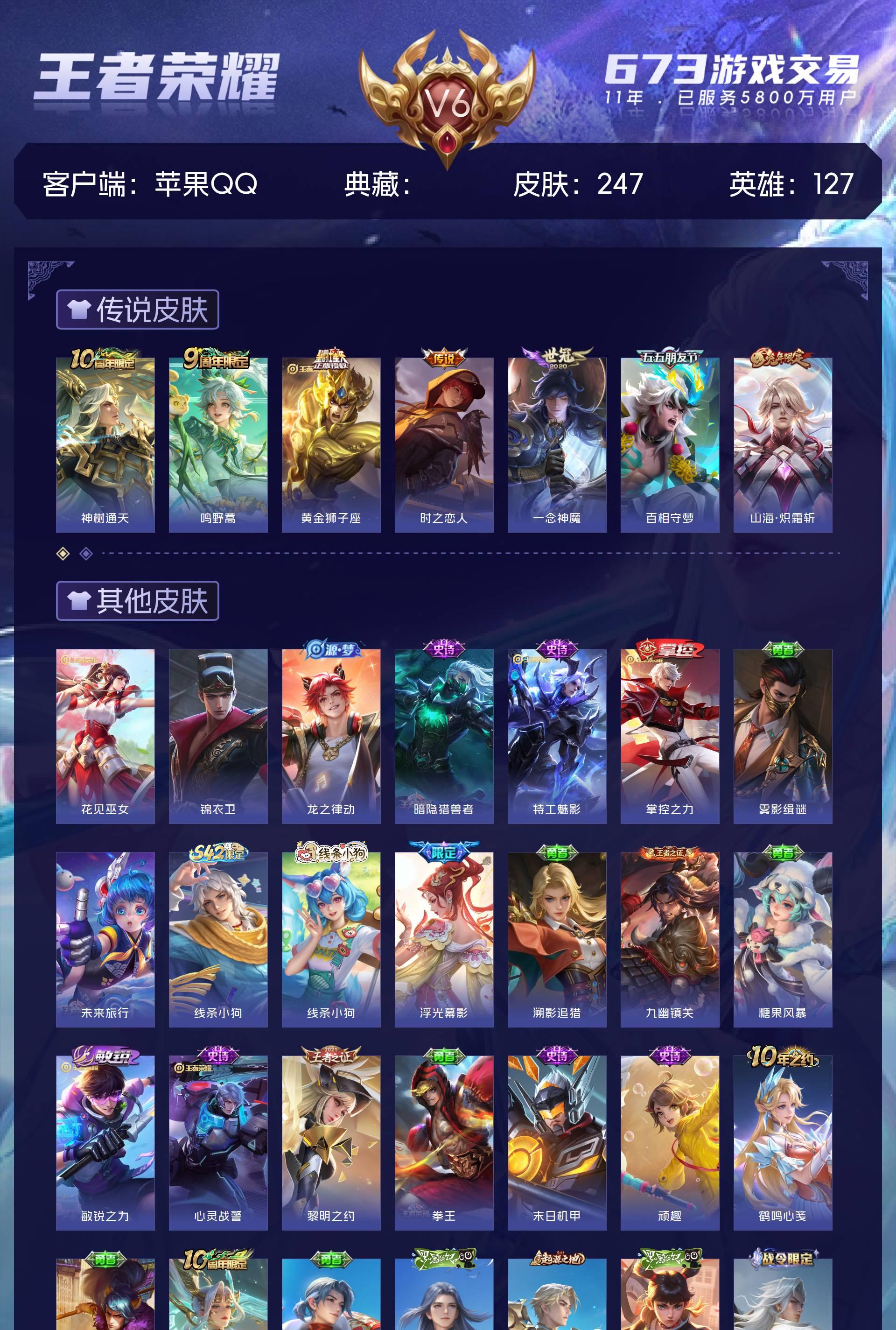V6 皮肤247 英雄127 永恒钻石 传说7