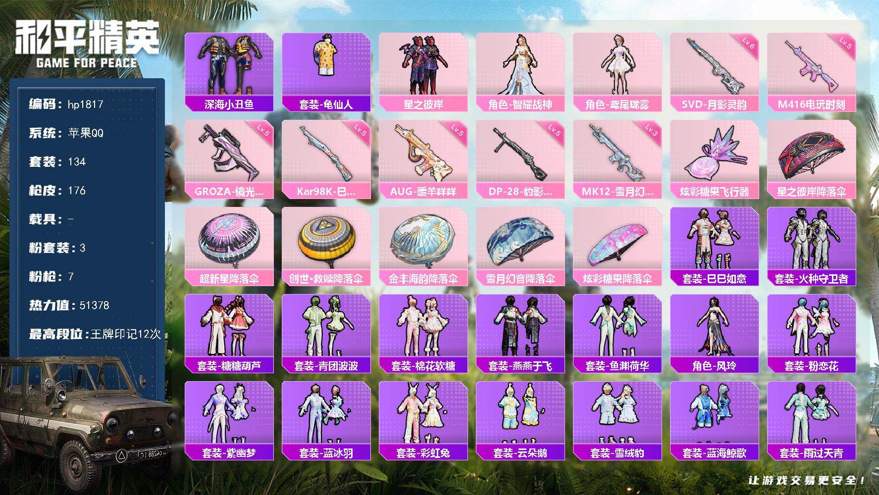 苹果 手Q-3粉装-7特效枪-0载具-1粉色飞行器-5137