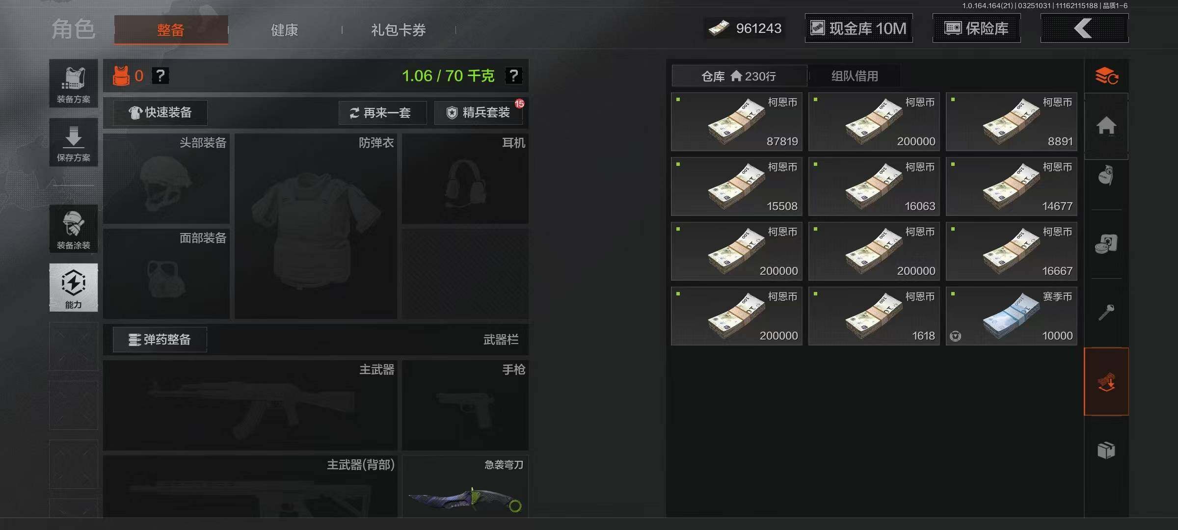 等级:30/段位:尖兵/仓库价值(百万):27/急袭弯刀