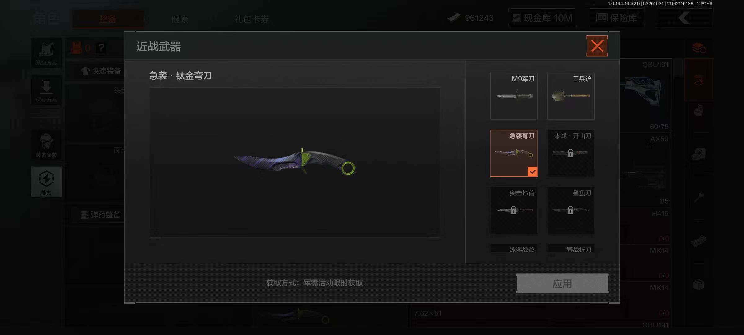 【AQN239】等级:30/段位:尖兵/仓库价值(百万):27/急袭弯刀
