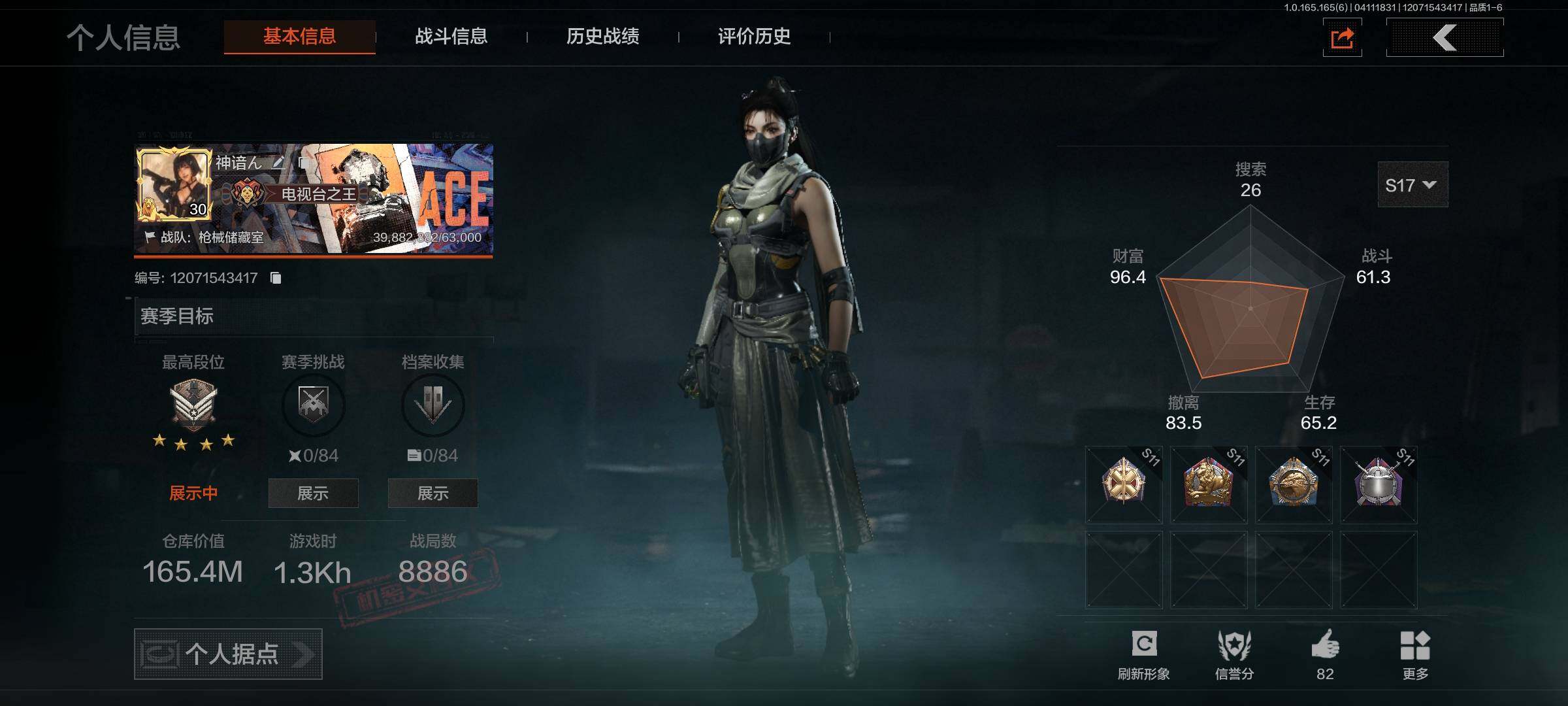 等级:30/段位:专家/仓库价值(百万):165/柯恩币:3