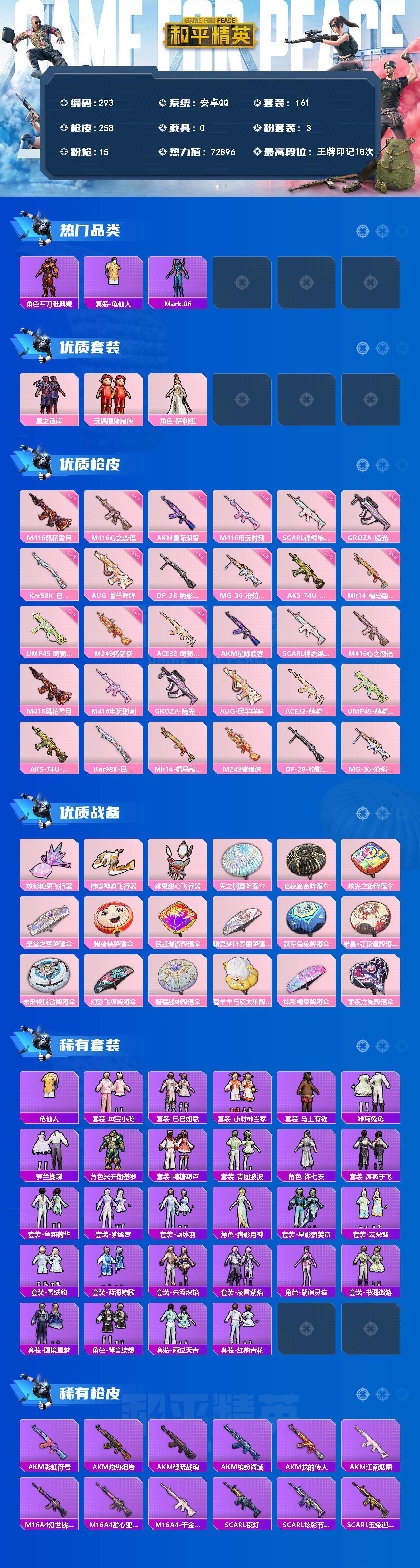 A1829安卓 手Q-3粉装-15特效枪-0载具-3粉色飞行器-72896热力值-18王牌印记-161套装-258枪皮