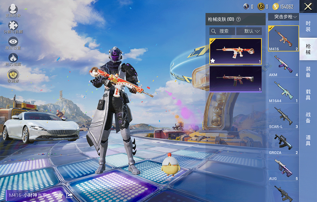 特效枪6:蜜獾-异瞳寒姬/6级,,AKS-74U-森灵之息/5级,,M762-青锋波束/5级,,Mk14-福马献瑞/5级,,DP-28-豹影疾电/5级,,Kar98K-巳巳如意/5级,