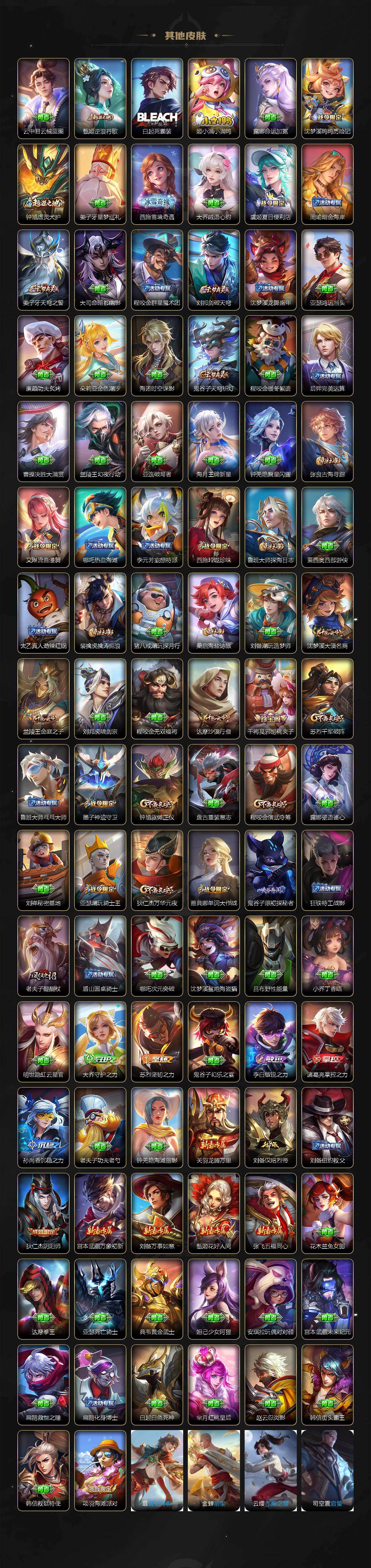 【限定皮肤】:铠冥王哈迪斯,大乔绒语心约,虞姬夏日便利店,姜子牙天穹之誓,狄仁杰阴阳师,赵云皇家上将,墨子神迹守卫,庄周高山流水,元歌云间偶戏,元歌无心,狄仁杰魔术师,狄仁杰万华元夜,达摩沙漠行