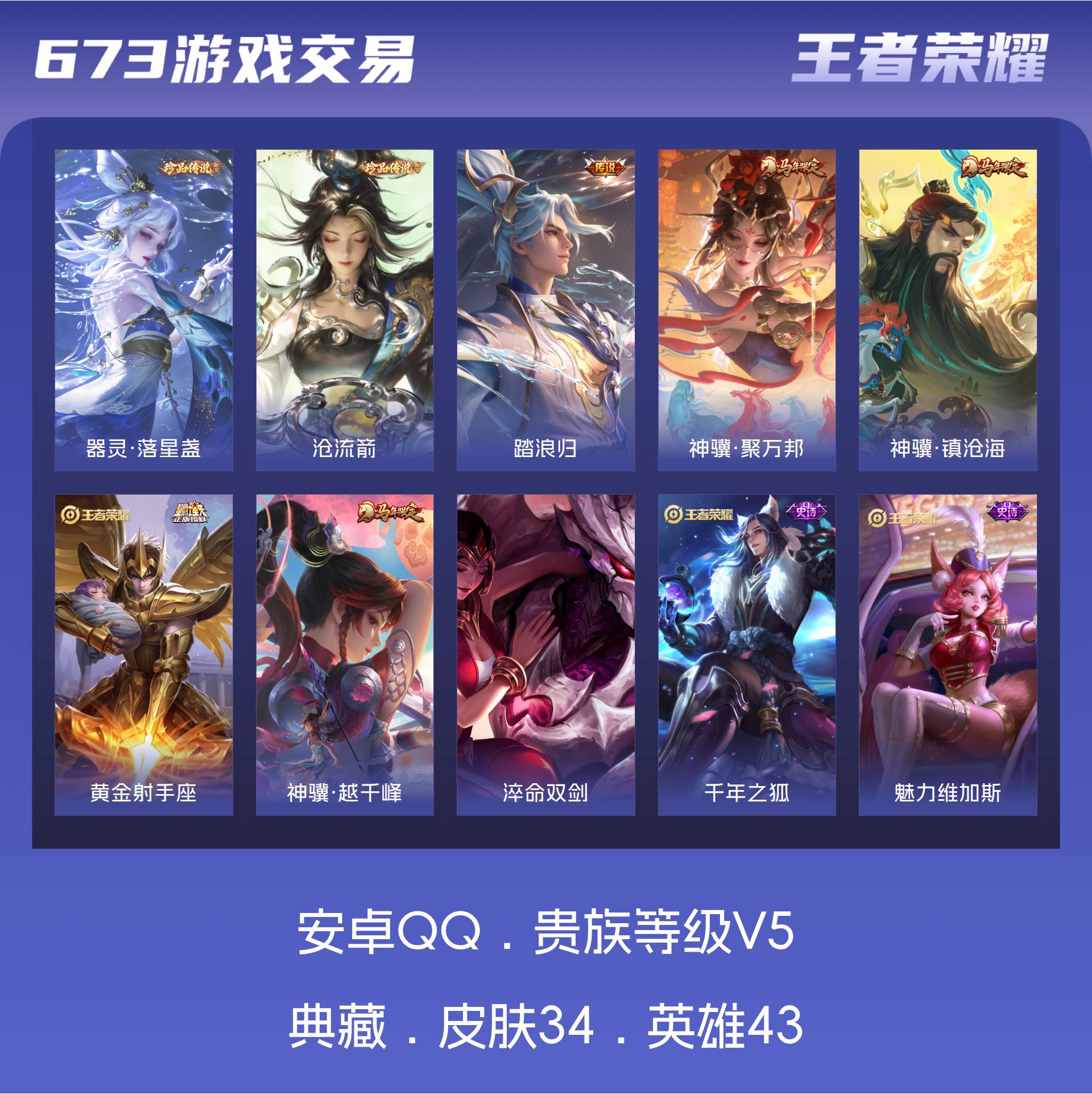 V5 皮肤34 英雄43 永恒钻石 珍品传说2 传说5