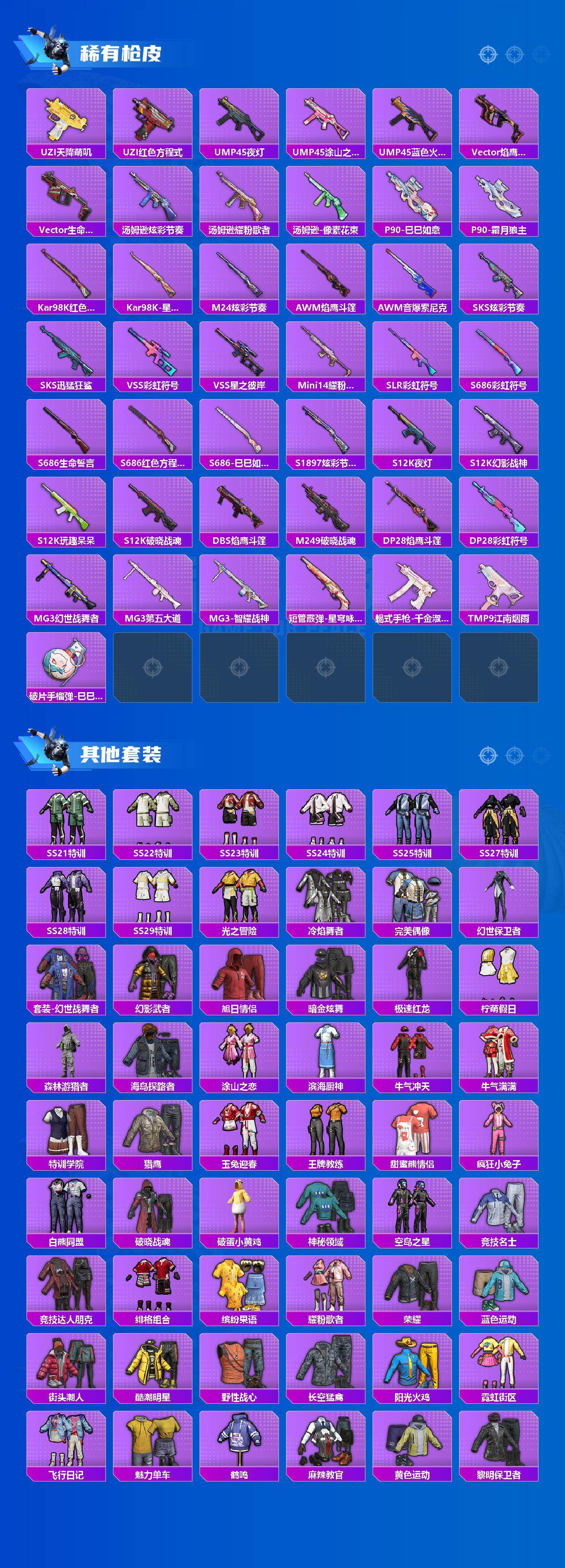 【粉色枪皮等级】:M416-电玩时刻(五级),GROZA-镜光银凌(五级),M762-青锋波束(五级),ACE32-萌骑漫游(四级),UMP45-量子极限(五级),UMP45-萌骑冒险(一级),AK