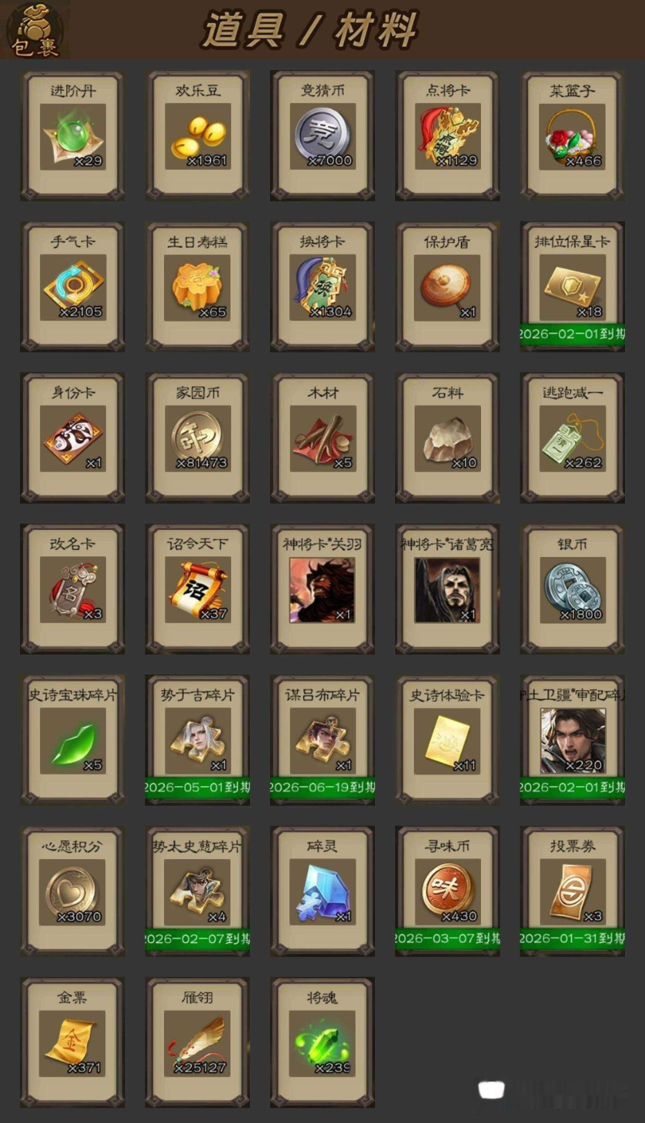 VIP10大将军,353武将,371皮肤,26动皮,39史诗武将:四星刘焉、四星孙寒华、四星文鸯、四星星魏延、四星杜预、四星界徐盛、四星神郭嘉、四星谋曹丕、四星谋黄忠、傅佥、兀突骨、左慈、张星彩、张让、戏志才、星周不疑、曹纯、杨修、沙摩柯、沮授、王元姬、王平、界左慈、界朱然、界李儒、界钟会、界黄忠、神吕布、神吕蒙、神周瑜、神张辽、神赵云、神陆逊、程昱、花鬘、董允、诸葛瞻、谋马超、谯周、赵襄、麹
